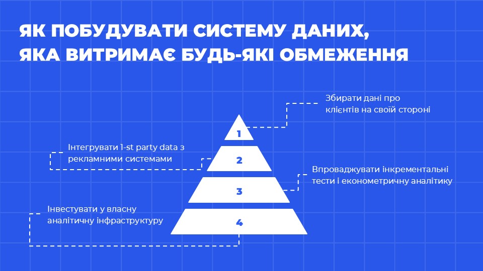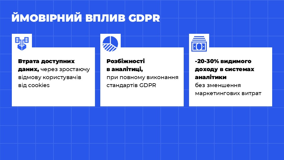 Відповідно цей тренд буде поширюватися і дуже скоро ці стандарти захисту даних призведуть до того, що необхідні дані ритейлерам потрібно буде якось збирати самостійно, інвестуючи кошти у власну інфраструктуру для їх збору. Сама ж система безкоштовної аналітики якщо й залишиться, то дуже сильно трансформованою. Потрібно буде, звісно, тестувати, вивчати, як ті чи інші дані впливають на результат. І великим викликом є те, як цю інформацію передавати у власні рекламні системи, щоб вони могли вчитися. Ну і, звісно, збирати ключову інформацію про клієнтів на «своїй стороні».