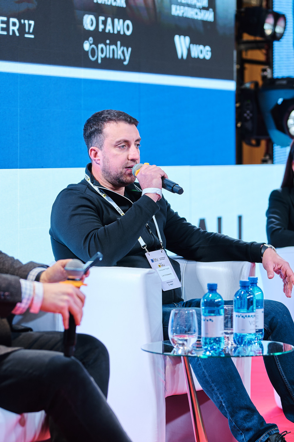 На фото: Іван Кришталь поруч з модератором сесії директором з маркетингу АЗК WOG Геннадієм Карлінським