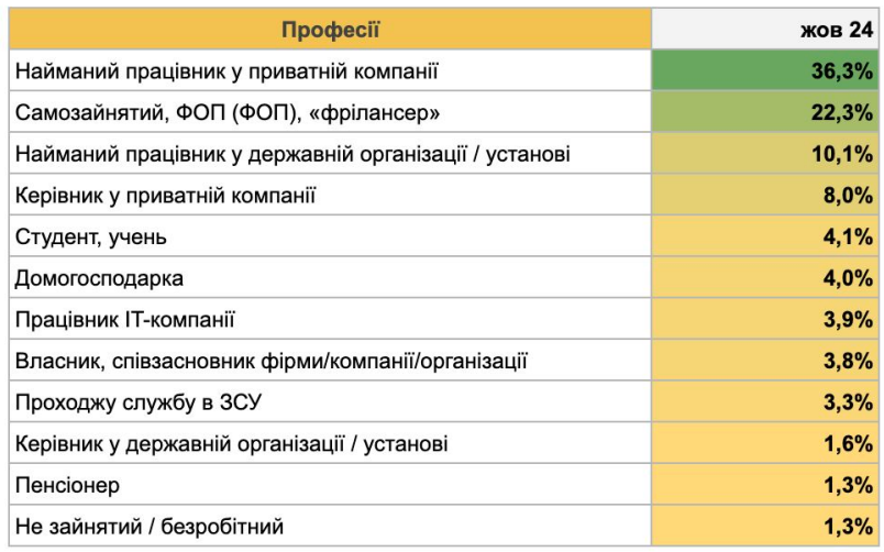Також в кінці 2024 року запитували гостей про зайнятість: