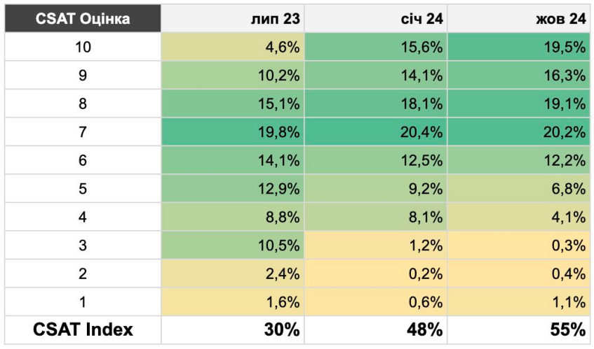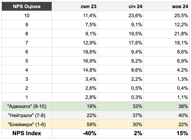Мене особисто результати тішать, але все ж бачу необхідність зосередитися на покращенні слабких зон, щоб збільшити загальну лояльність. Над цим і будемо працювати в 2025 році.