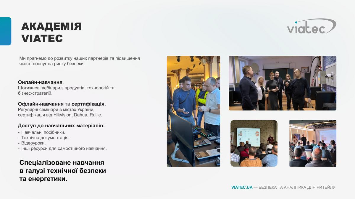 - Усе, що ми робимо, починається з людей. Viatec — це не просто компанія, а спільнота професіоналів, об’єднана спільною метою: робити український бізнес безпечнішим, ефективнішим і сучаснішим. Ми свідомо інвестуємо в розвиток фахівців — як усередині компанії, так і в освітніх ініціативах на ринку. Одним із таких напрямів стала Viatec Academy — освітня платформа, де навчаємо партнерів, інсталяторів і технічних спеціалістів новим технологіям і стандартам роботи.