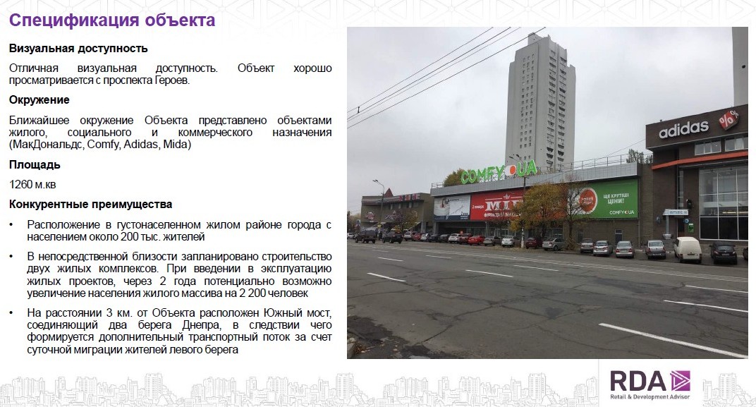 Саме в такій концепції і планують розвивати майбутній торговий кластер в Дніпрі на проспекті Героїв. Він буде складатися з двох будівель: перша – орендною площею 1 169 кв. м, друга – площею 1200 кв. м. «Це буде об’єднання декількох всесвітньовідомих спортивних брендів, де буде широкий вибір спорттоварів, що продаються зі знижками», – уточнює Таїсія Литовченко з Retail & Development Advisor. Вже зараз почалося формування пулу орендарів: 600 кв. м займає дворівневий Adidas, і 800 кв. м – двоповерховий магазин Марафон.