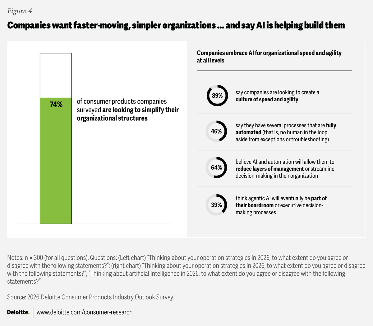 Власне, щоб ШІ приносив максимальну цінність, також може знадобитися організаційна простота. Більш плоскі структури та комплексні процеси, що перетинають різні традиційні функції в компанії, дозволяють краще використовувати аналітичні дані та передавати рішення по всій організації для здійснення ефективних дій.