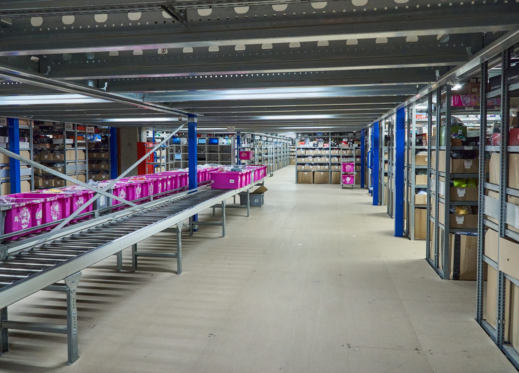 Якщо товар надходить не для відвантаження, а на зберігання, співробітники в першу чергу перевыряють товар, і визначають, чи відповідає він замовленню. Все, що пройшло етап разбраковки і відповідності, переміщується на конвеєрну лінію й автоматично піднімається на мезонін.