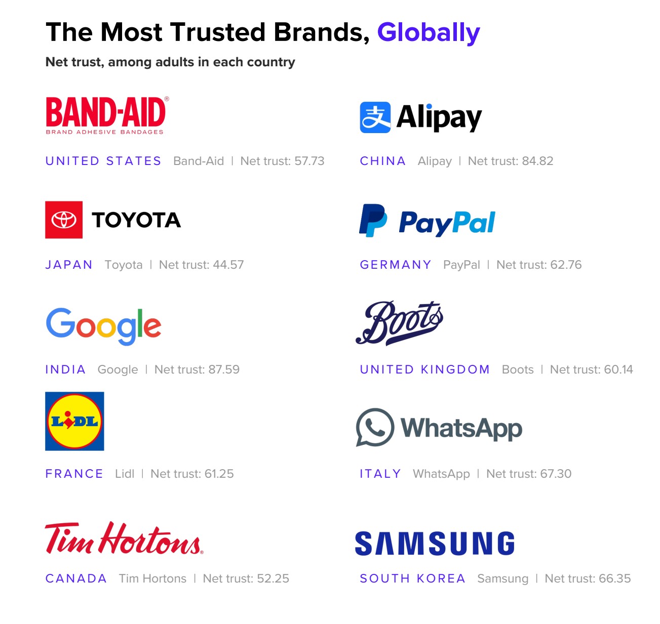 Перелік найнадійніших брендів, як правило, складається з імен, що добре зарекомендували себе та десятиліттями працювали аби завоювати довіру і лояльність споживачів. Довіру не можна заслужити за одну ніч. Проте слід пам’ятати про зростання наступного, більш скептично налаштованого покоління Z, представники якого набагато рідше довіряють будь-якому з брендів, відкриваючи можливості для новачків на ринку.