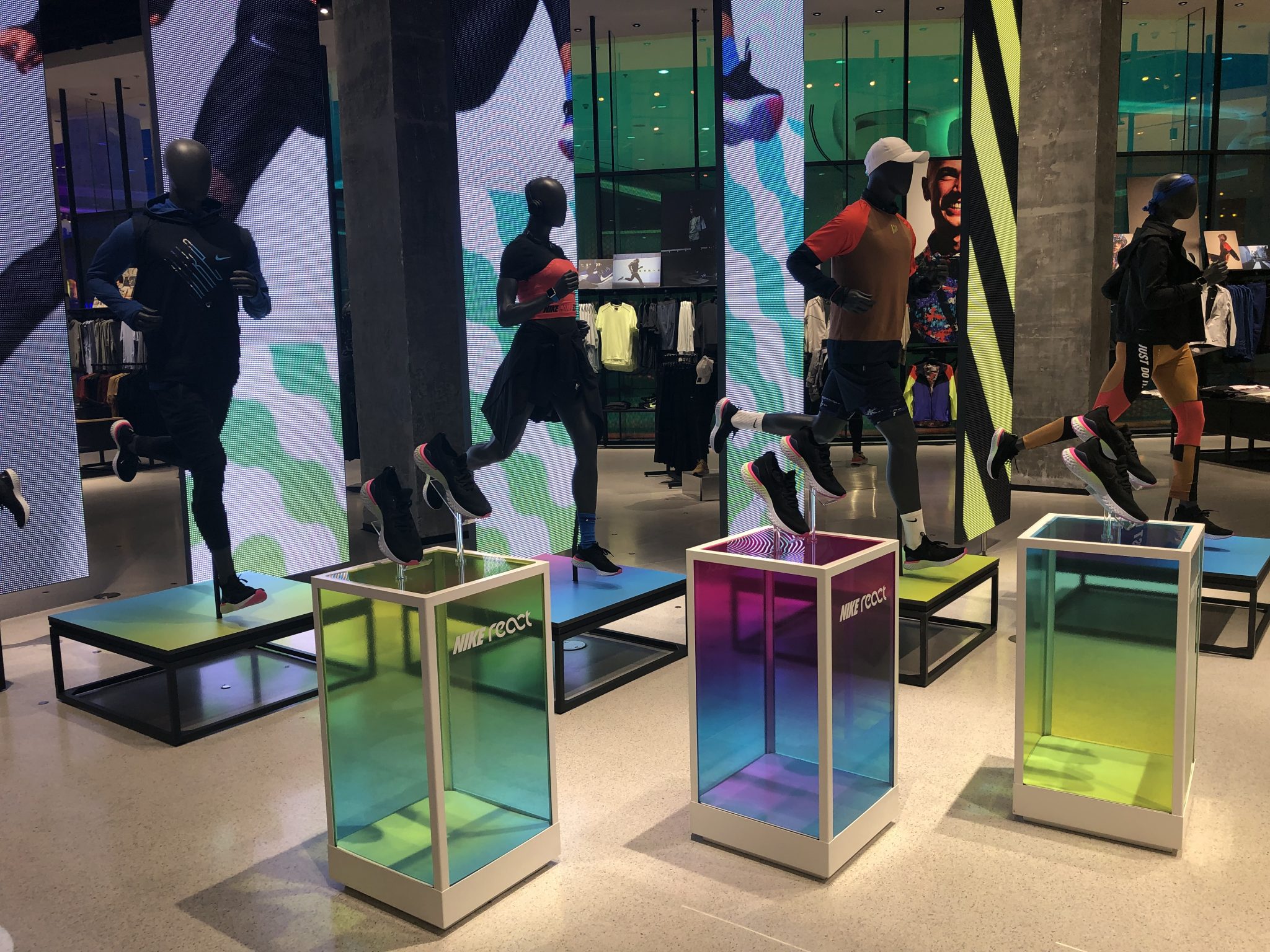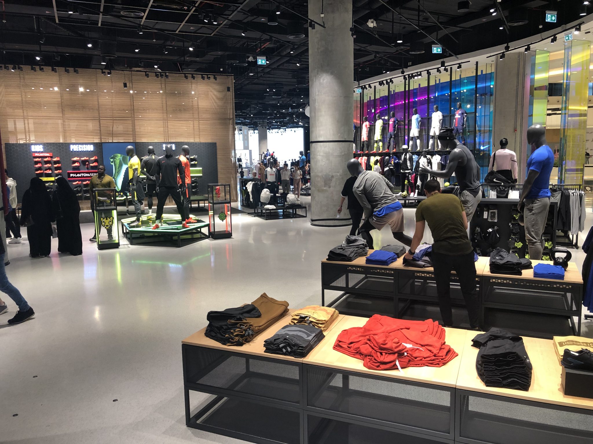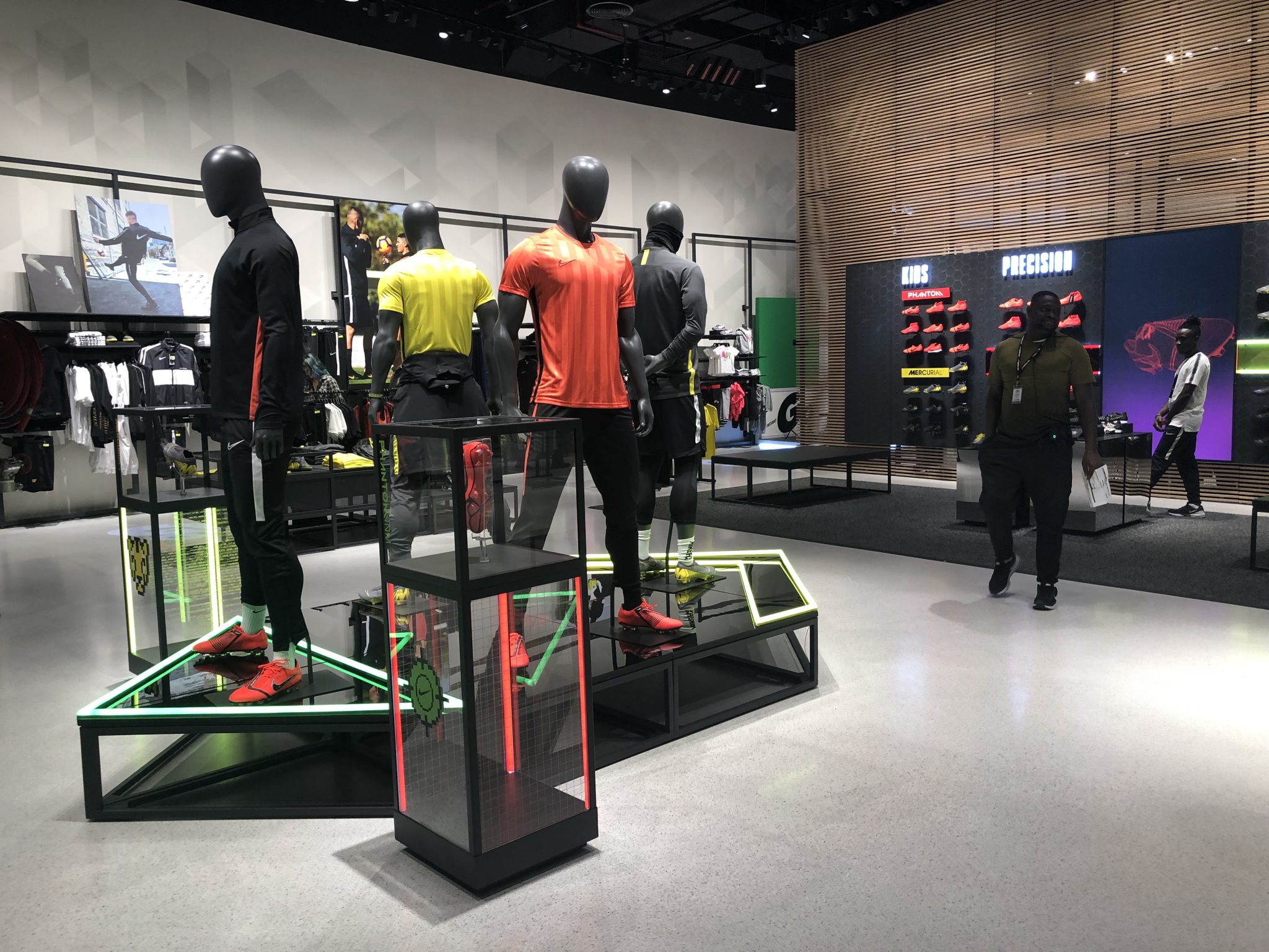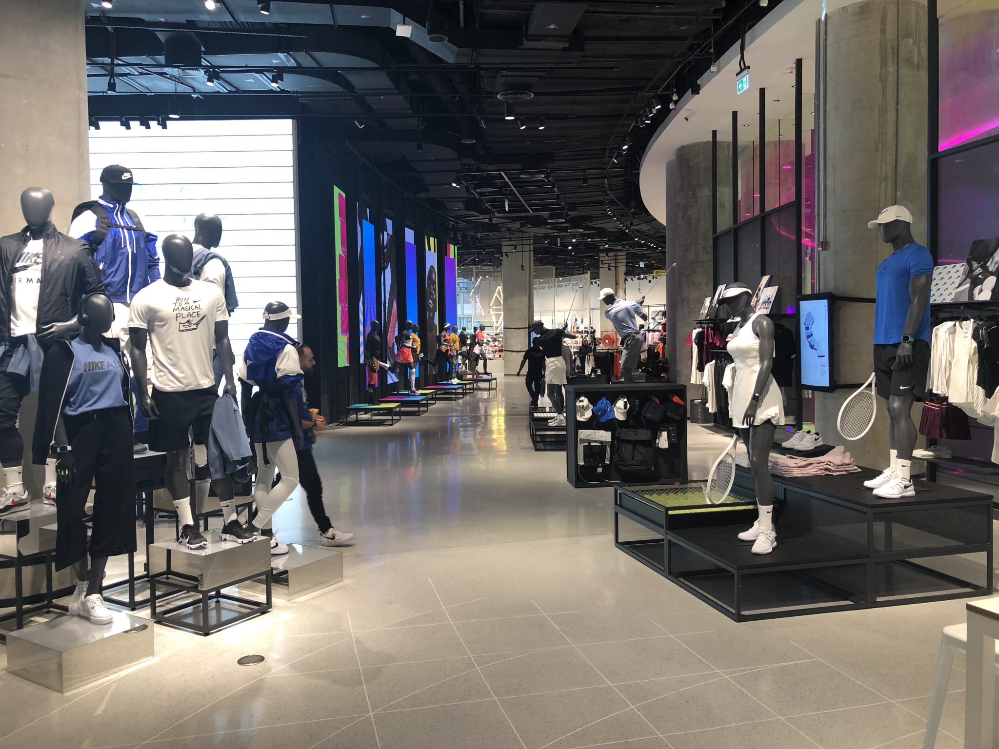 Американський бренд спортивного одягу Nike відкрив у найбільшому торговому центрі світу Dubai Mall флагманський магазин. Площа об’єкту склала 3290 кв. м, що зробила його найбільшою торговою точкою бренду на Близькому Сході і в Північній Африці. Крім основних залів, присвячених окремим видам спорту, в магазині є лаунж-зона з пуфиками, де покупці можуть відпочити і насолодитися видом на танцюючі фонтани. У більшості залів представлені товари для чоловіків – асортимент для жінок пропонують в одному окремому залі. Також є окремі зони, де продаються дитячі речі.