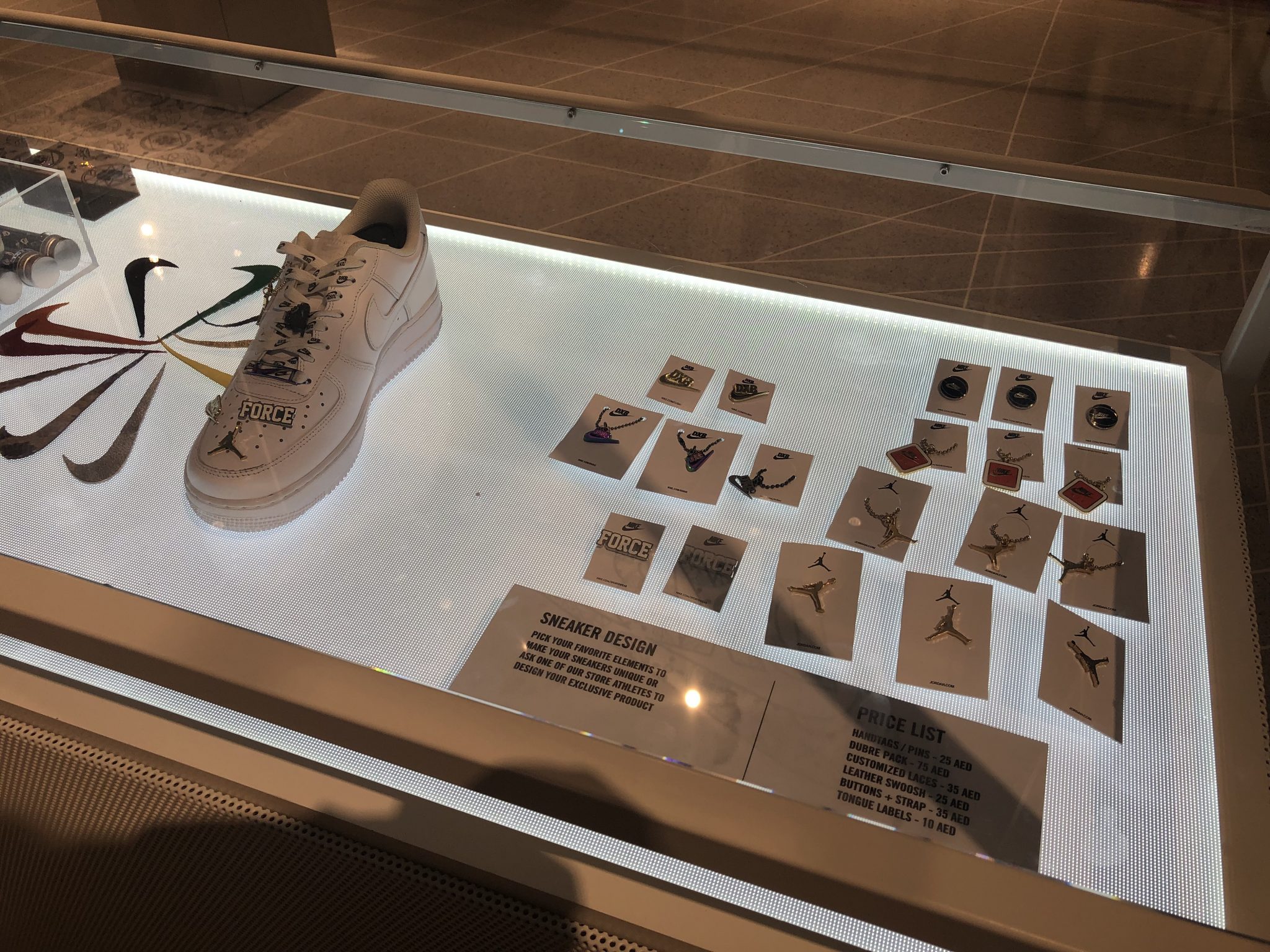 Також в спортивному бутіку знаменитого бренду є бігова доріжка, на якій люди тестують кросівки. Крім цього, торгова точка Nike в Dubai Mall обладнана мініатюрної баскетбольним майданчиком, на якому також можна всіляко протестувати майбутню покупку.