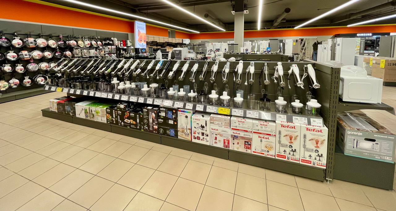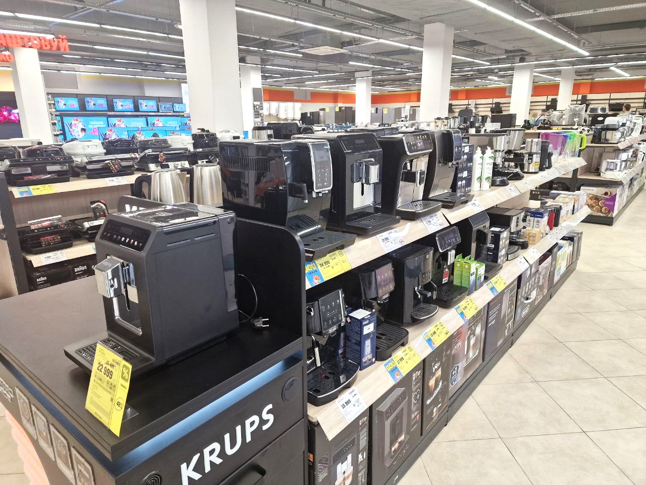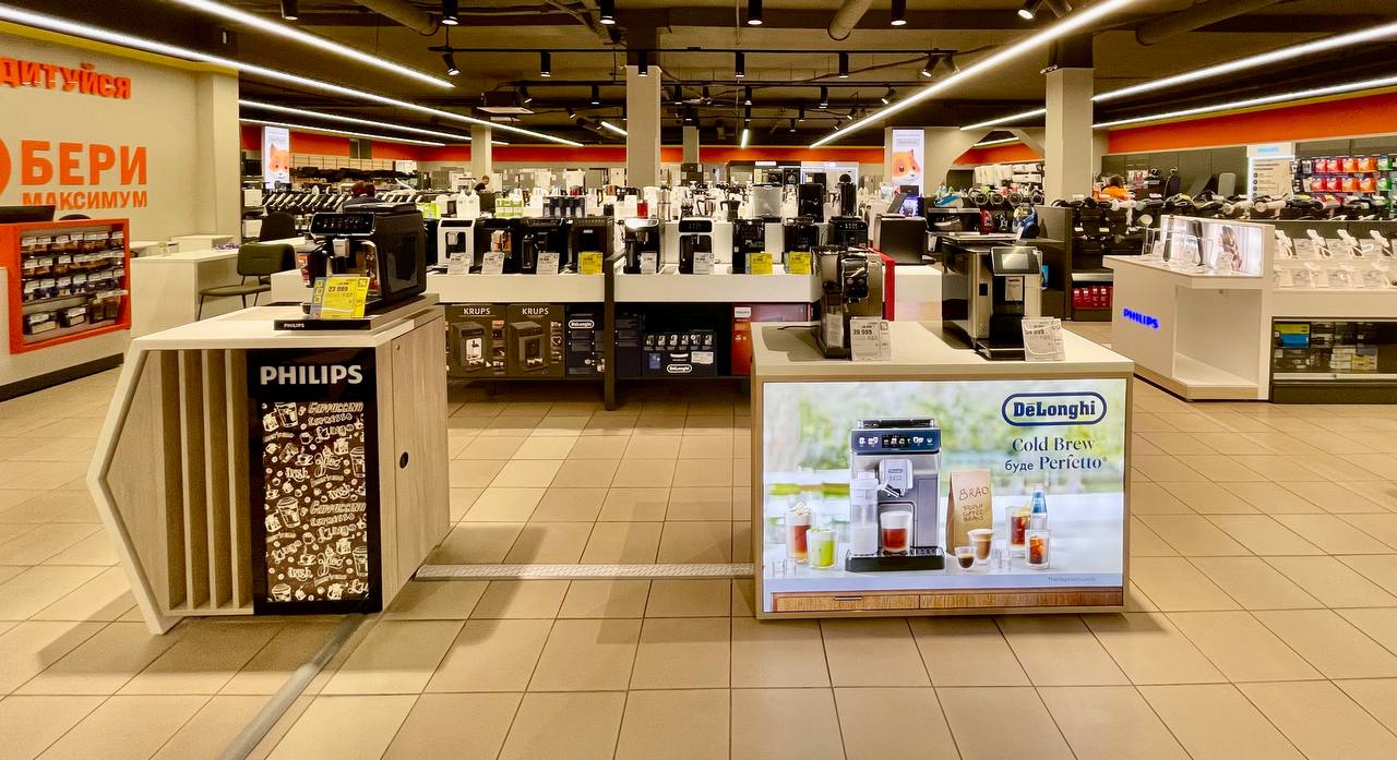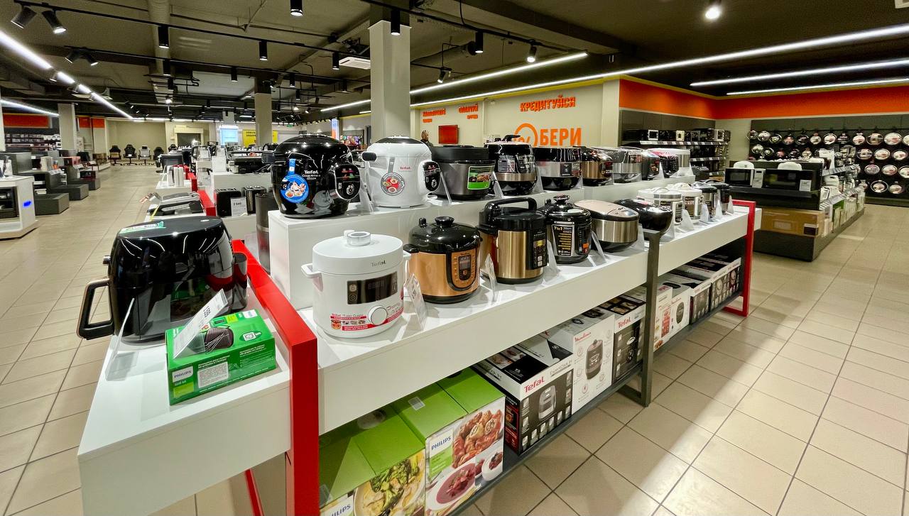 Магазин приваблює сучасним «хабом», що об’єднує касову, кредитну, сервісну, адміністративну зони, розмаїттям асортименту в усіх категоріях і кількістю бренд-зон від провідних виробників техніки. Зокрема, смартфони і телевізори від ТМ Samsung, кавомашини Krups, побутова техніка Rowenta і Tefal, бьюті-зона від Philips і Rowenta та інші.