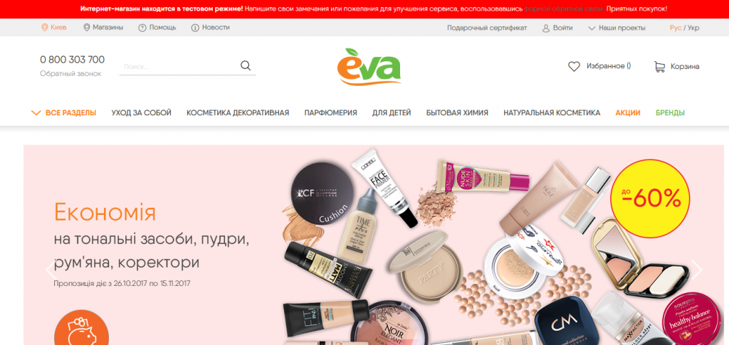 Цього року drogerie ритейлер EVA запустив онлайн-майданчик. Один з його конкурентів – Watsons – зробив це 1,5 роки тому і магазин вже генерує 7000 покупок в місяць.
