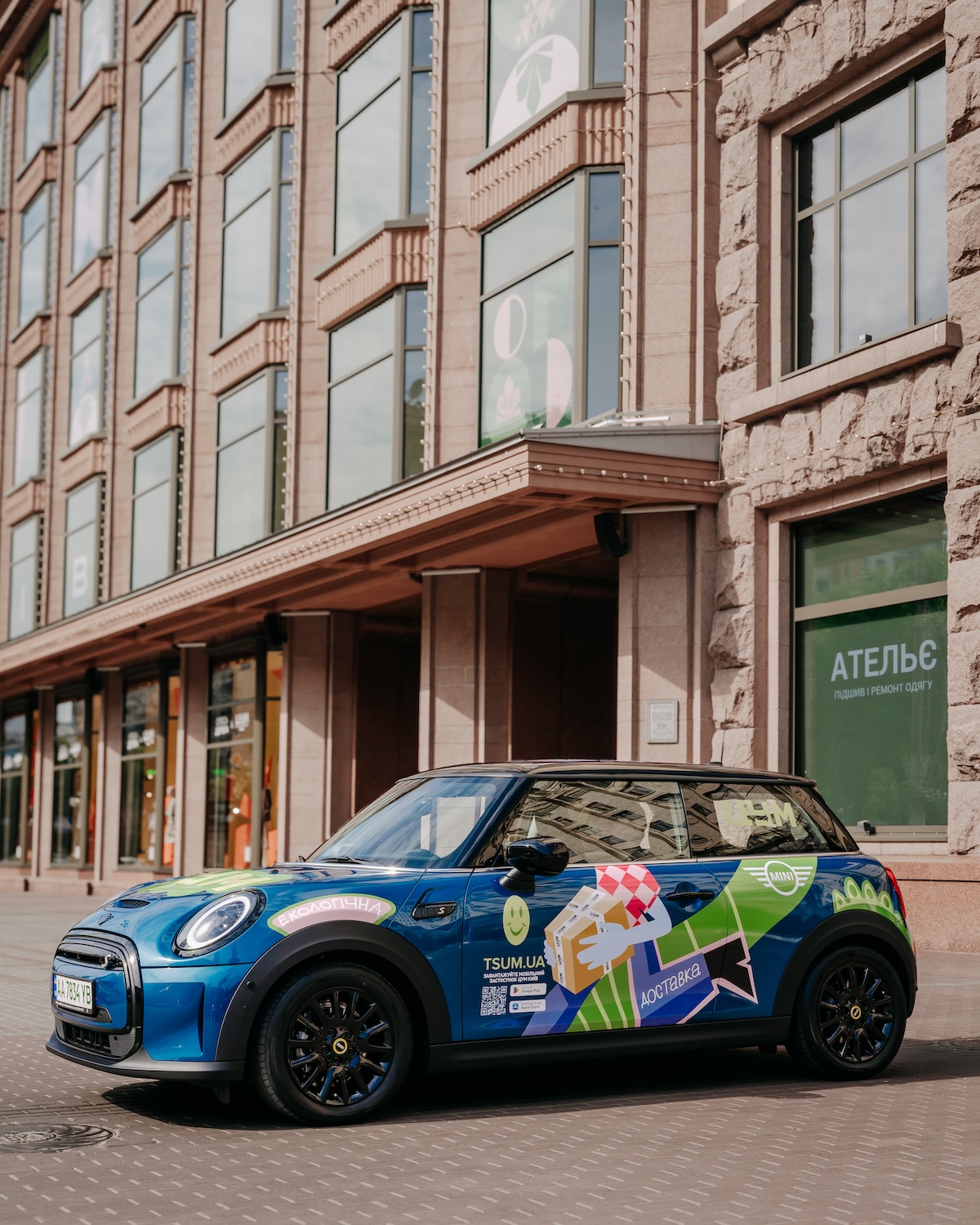 ЦУМ Київ продовжує мінімізацію свого екосліду та запускає екологічну доставку замовлень з інтернет-магазину tsum.ua в межах Києва на двох електромобілях MINI Electric.