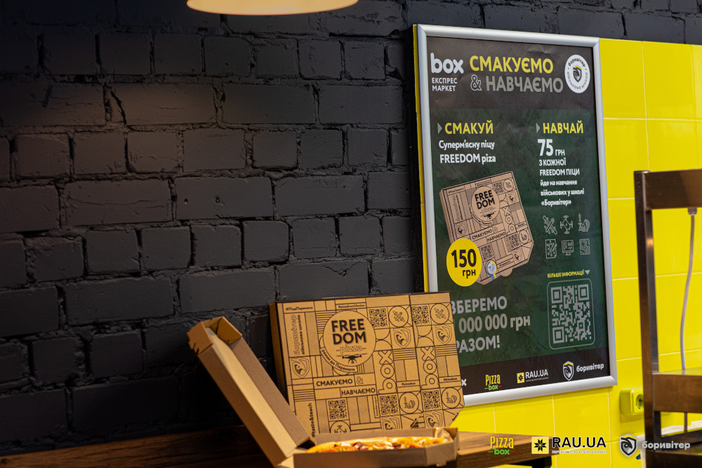 «З перших днів війни мережа box маркет зайняла активну позицію в питанні допомоги нашій армії, задля спільної перемоги. Сьогодні ми прийняли рішення зробити інвестицію в освіту наших військових, розробили ексклюзивну супермʼясну «FREEDOM піцу», 75 грн з продажу кожної йтиме на підготовку військовослужбовців у школі Боривітер», – розповідає маркетинг-директор мережі Марина Вознесенська.