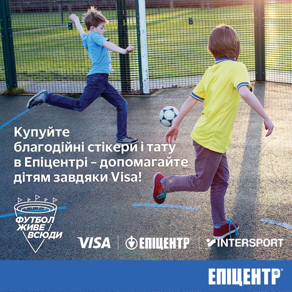 У грудні Епіцентр презентував соціальну ініціативу з підтримки дитячого футболу у торговій мережі та онлайн-магазині в партнерстві з Intersport та світовою платіжною системою Visa. Тепер покупці у торгових центрах можуть зробити свій внесок у розвиток дитячого футболу в Україні, підтримати талановитих хлопчаків та дівчаток, які займаються у дитячих футбольних клубах, хочуть і можуть стати професіоналами та в майбутньому прославлять Україну на професійному рівні!