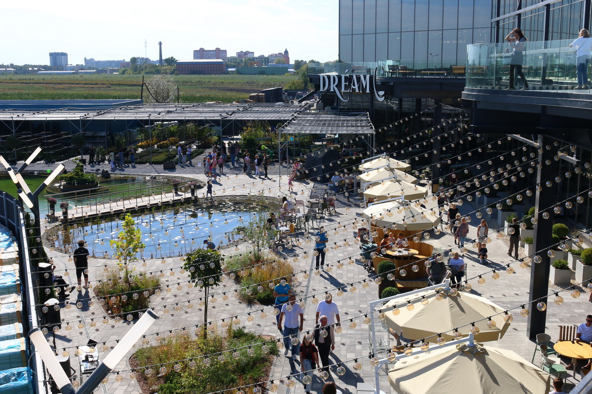 В рамках проєкту компанія також реалізувала літній майданчик з власним озером та штучним водоспадом, який в теплу пору року планується використовувати для проведення свят і фестивалів вина, сиру, морозива тощо. Задля безпеки відвідувачів під ТРЦ було побудовано великий підземний паркінг, що слугуватиме надійним укриттям у випадку повітряних тривог.