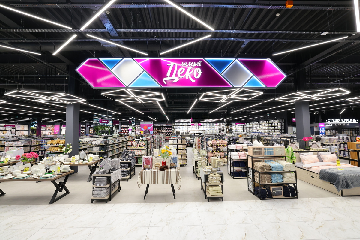Окрім продуктового магазину, на першому поверсі ТРЦ працюватимуть Центр Техніки ЦЕ ТЕ, AutoMall, Аптека 100+, флора-центр Букет та вже звичні для мережі відділи з широким асортиментом товарів для будівництва, ремонту та оздоблення осель. На другому поверсі розмістяться Галереї ДЕКО, Центр Меблів, Кераміка Центр, Садовий Центр, товари для відпочинку All4Rest, Студія світла, дитячий магазин ЕПіК, спортивний супермаркет Intersport, зоомагазин Lapki та інші торгові формати.