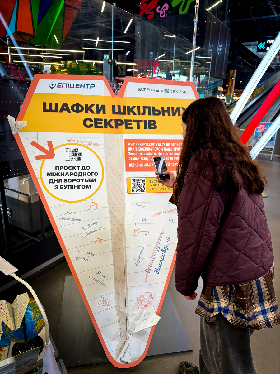Проєкт приурочений до Міжнародного дня боротьби з булінгом та реалізований спільно з мережею приватних шкіл Alterra і креативною агенцією Taktika.