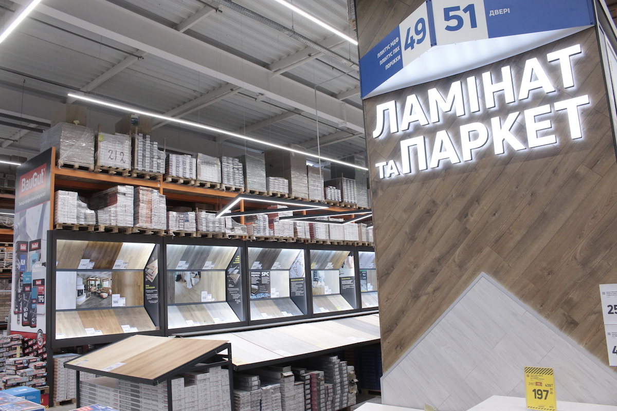 Найбільшим відділом в оновленому ТЦ стане Сад та город, площею понад 3000 кв. м. Серед інших великих відділів Вироби з дерева (2200 кв. м), Будівельні матеріали (1600 кв. м) і Декор (майже 1000 кв. м). Більше тисячі квадратних метрів також займатимуть відділи Вироби з металу, Покриття для підлоги і Сантехніка, в структурі якого буде реалізовано новий формат shop in shop Дім води.