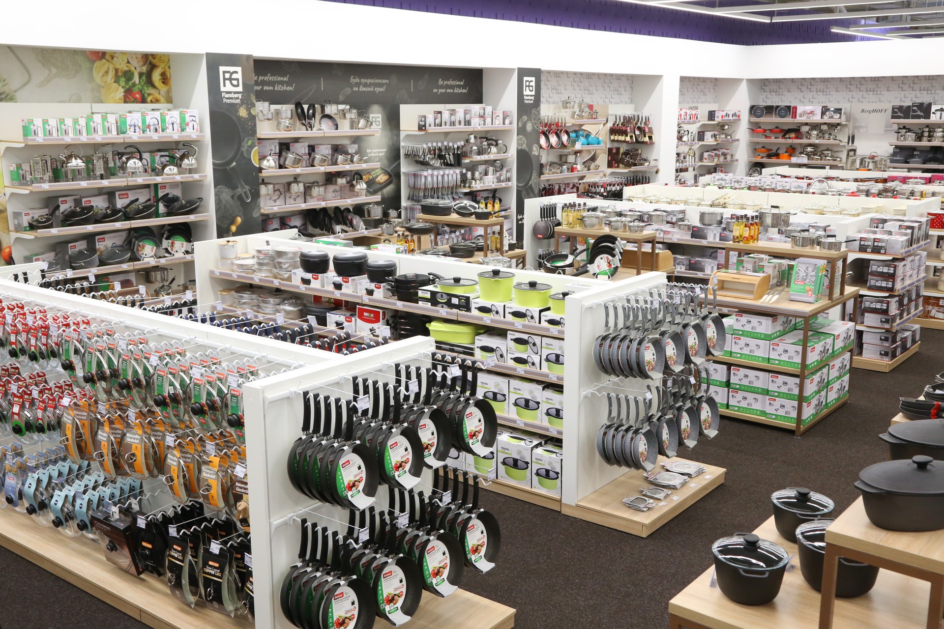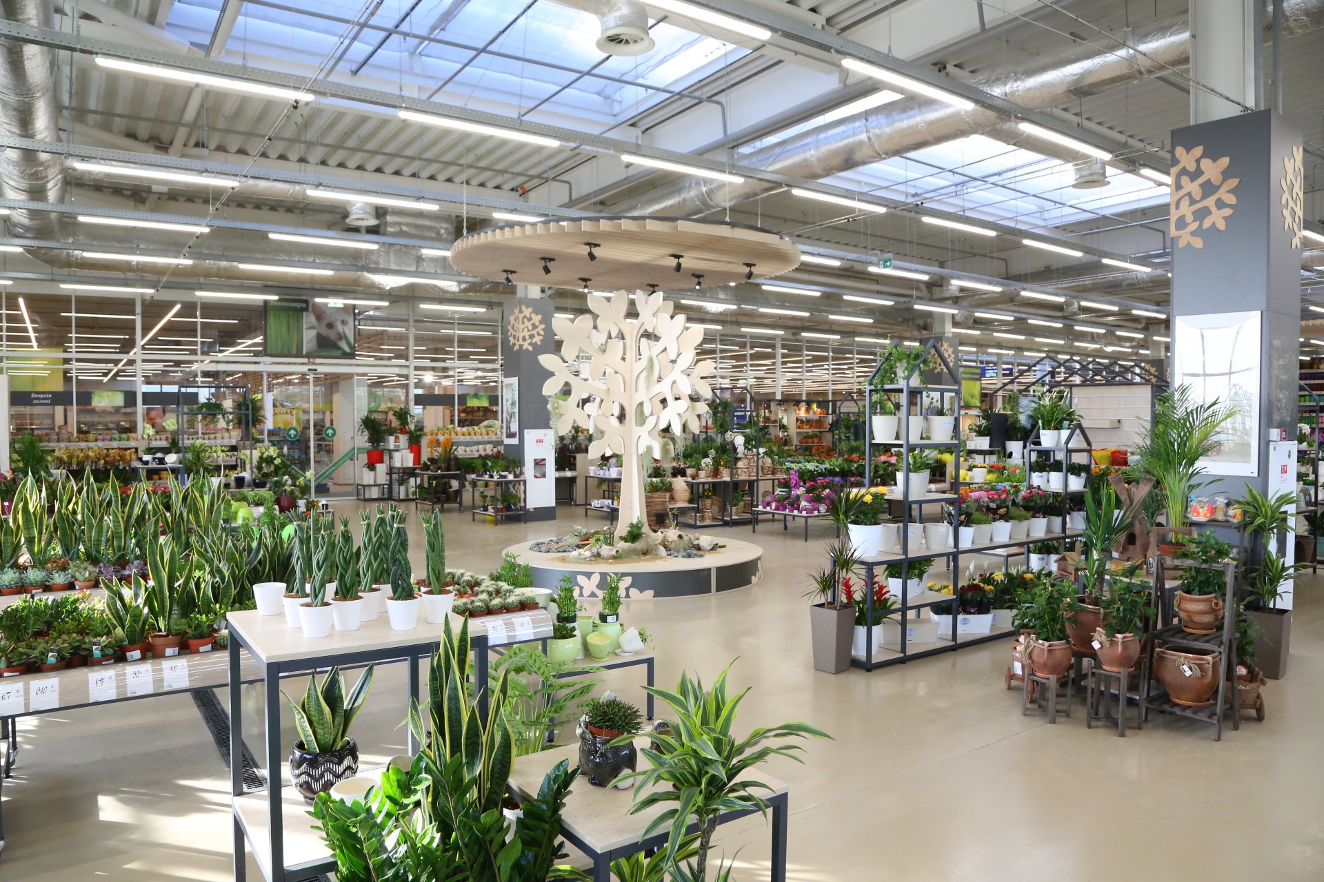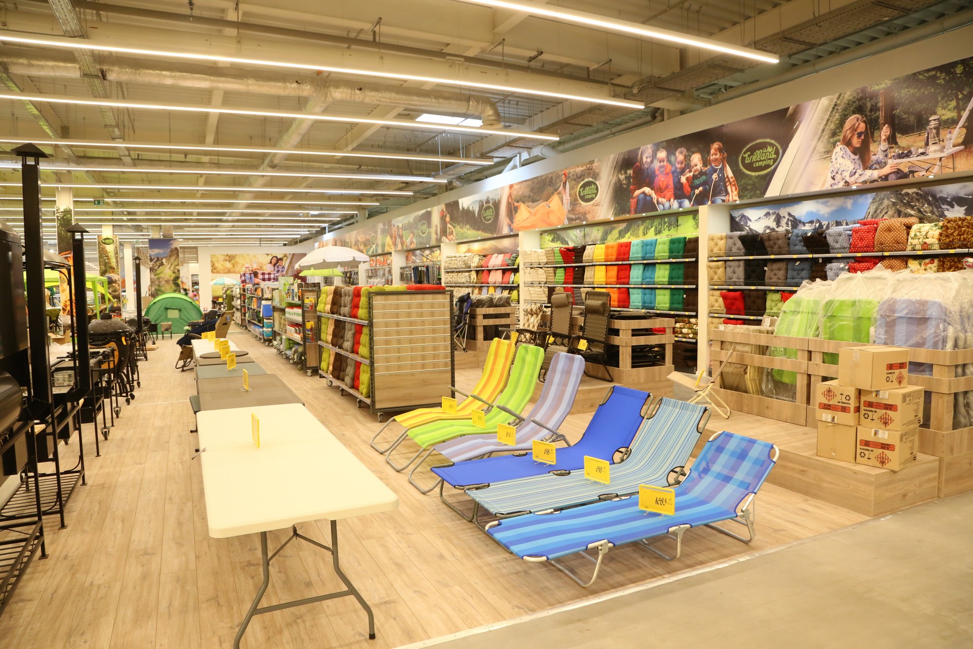 Серед найбільших відділів у новому ТЦ – «Сад та город» (8 700 кв. м) та «Вироби з металу» (5 409 кв. м). В ТЦ також працюють салони світла, шпалер, плитки та сантехніки, студія фарб, галереї Деко, товари для мисливства та рибальства, канцтовари, будматеріали.