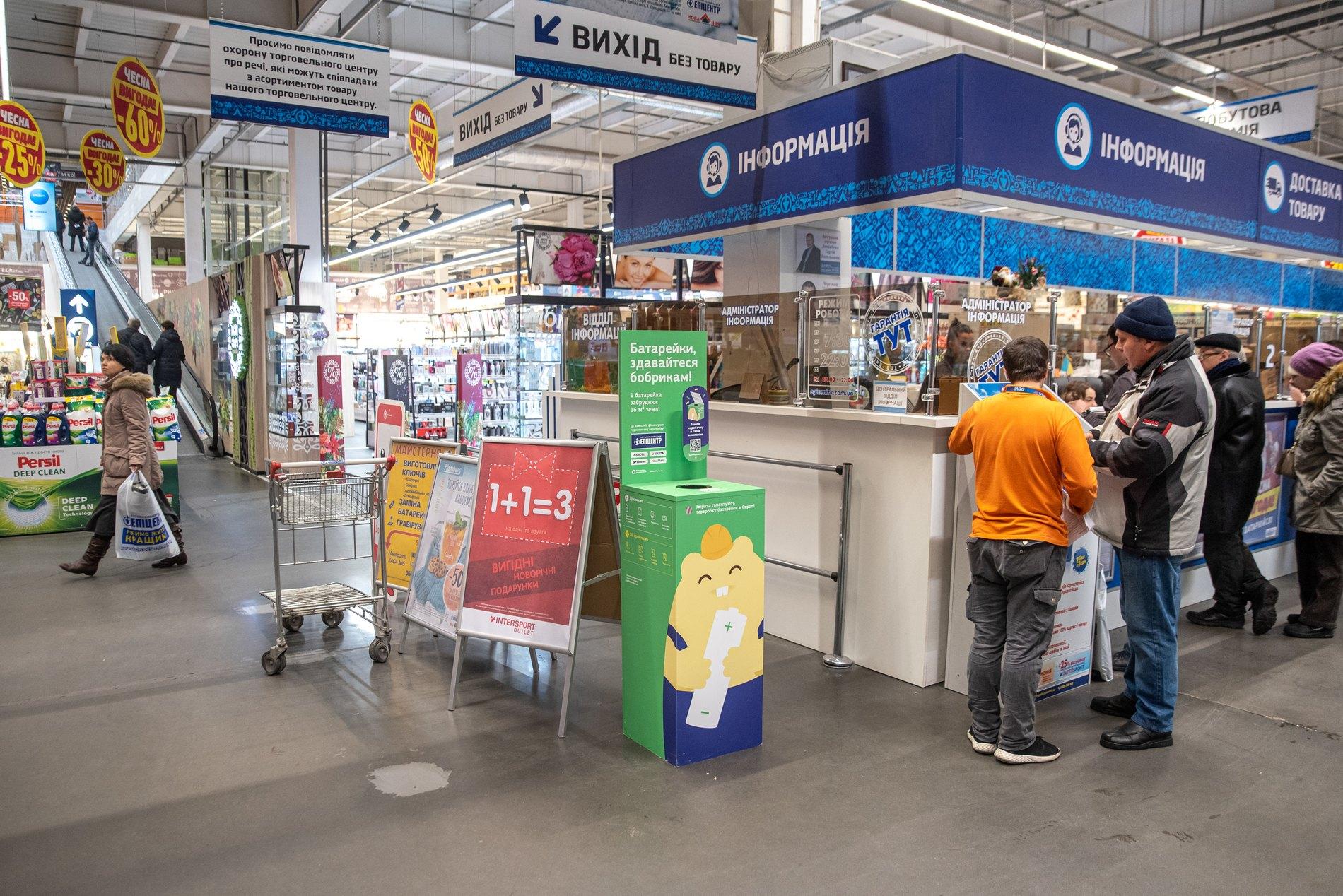 У ТЦ Епіцентр і Нова Лінія встановили бокси для батарейок на переробку в Європу