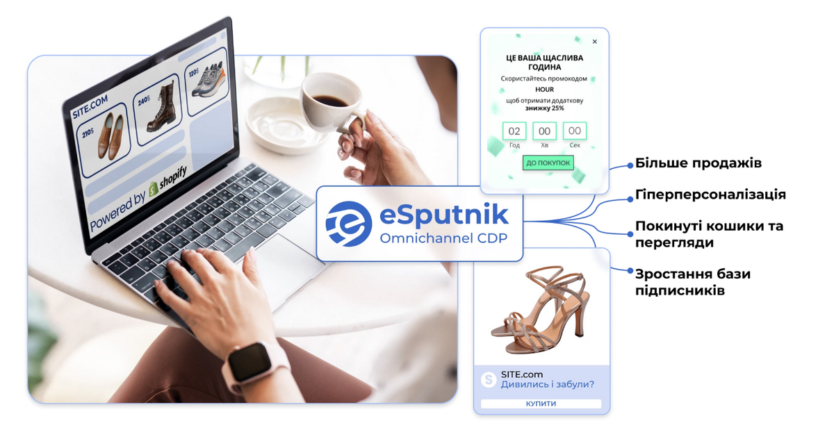Завдяки інтеграції Shopify з найбільшою українською платформою клієнтських даних eSputnik бізнеси отримають: