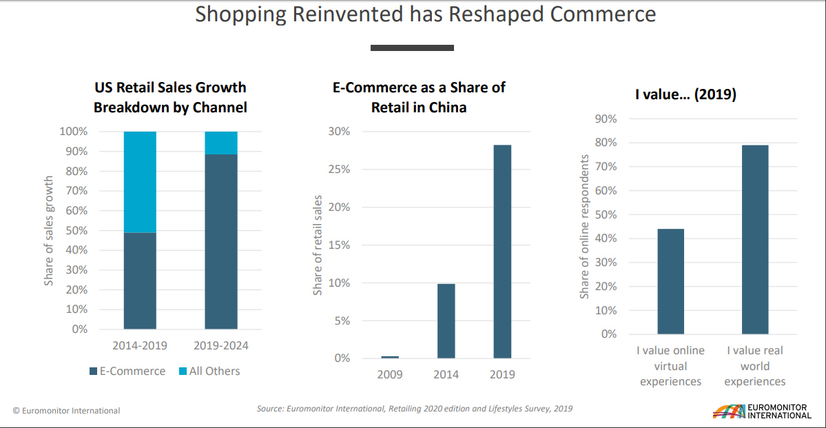 Група експертів Euromonitor International серед восьми основних тенденцій, які можуть привести до найбільших змін в торгівлі, в доповіді Shopping Reinvented виділяє нові способи придбання товарів. Зокрема, дослідники відзначають, що 46% опитаних споживачів готові платити за економію часу, 57% вказують, що їм потрібна можливість здійснення онлайн-покупок, а 58% шукають персональний досвід здійснення покупок, підбудований особисто під їхні потреби. RAU публікує адаптовану версію матеріалу.
