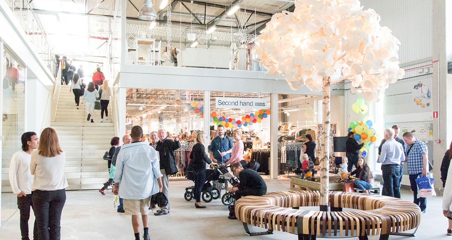 Шведська ReTuna в 2015 році відкрила перший в світі шопінг молл уживаних товарів. ReTuna має власний склад, де співробітники приймають внески, сортують товари, а в деяких випадках ремонтують або переробляють товари.