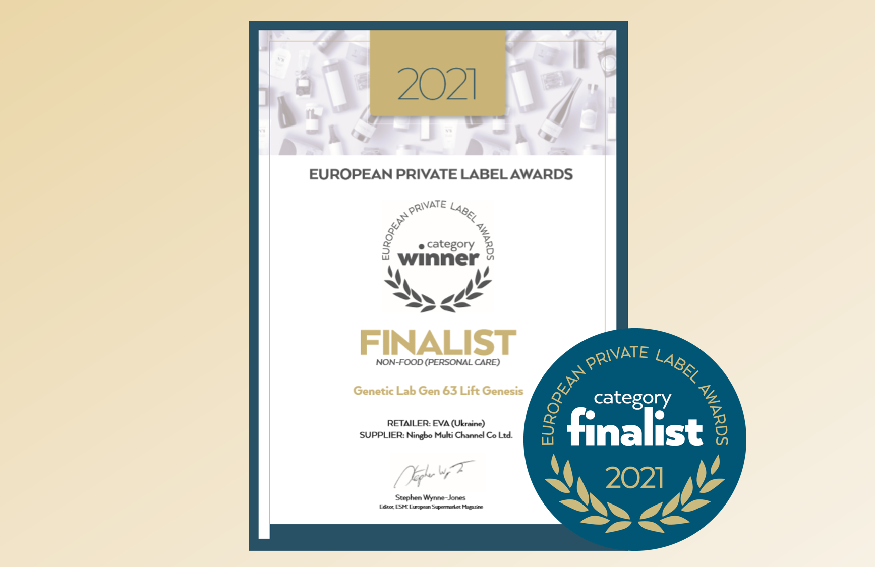Нещодавно продукт власної торгової марки GEN 63 Лінії магазинів EVA — магнітна золота маска з пептидами Lift Genesis — став фіналістом міжнародного конкурсу інноваційних товарів ВТМ європейських рітейлерів European Private Label Awards 2021 та отримав відповідний сертифікат. ТМ GEN 63 — це бренд косметики для спеціалізованого комплексного догляду за шкірою обличчя.