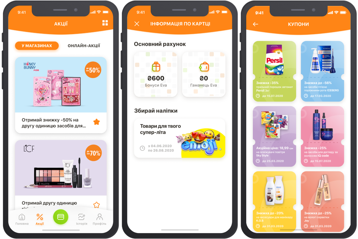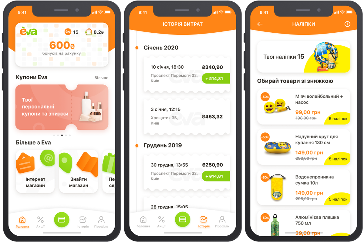– Клієнтський досвід дуже допомагає в розробці та доопрацюванні функціоналу, тому роботи з аналізу ринку і тестування програми з клієнтами проводяться регулярно. Наприклад, коли розробили перший UX/UI, фахівці компанії додали функціонал, який, як ми вважали, є пріоритетним для користувача. Наприклад, на головній сторінці під картою було розміщено блок з пошуком магазину, у нижньому меню замість історії покупок – список товару, купони були разом з акціями, а історія покупок на третьому екрані в розділі «Профіль».