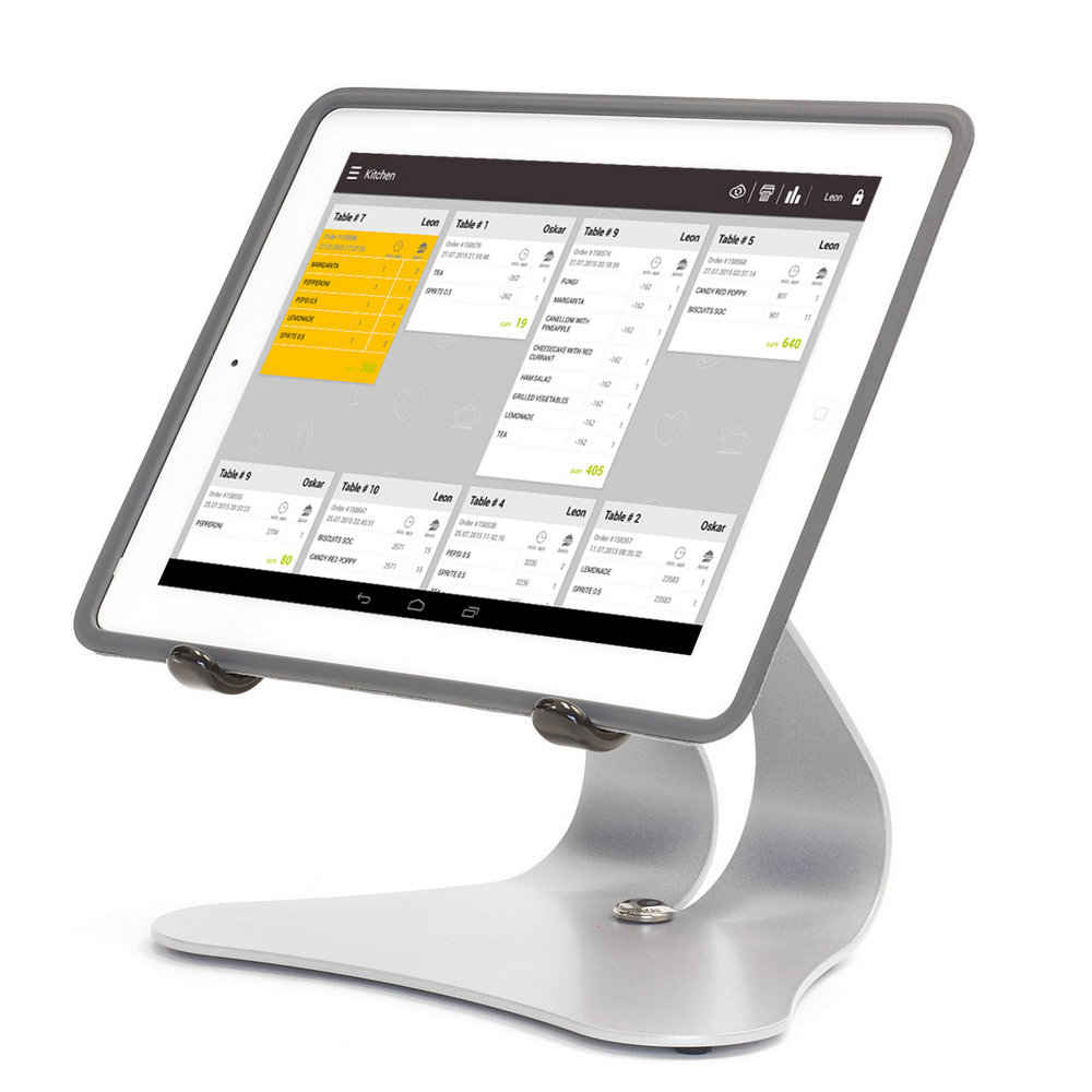 Йдеться про підставки для планшетів. Вони можуть елегантно і надійно розташуватися на поверхні та при цьому надавати інформацію клієнтам про акції, знижки, меню і так далі. Наявність антивандальной, стійкої основи, яка може плавно рухатися, дозволить користуватися гаджетом як відвідувачам, так і офіціантам.