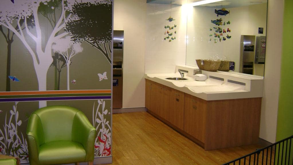 Westfield Stratford City – класичний приклад ТРЦ, в якому присутні багато описаних вище рішень. Зокрема, кімната для моління та тиха кімната. Відмінні кімнати для батьків з дітьми облаштували в одному з найбільших австралійських ТРЦ – Westfield Southland. Там розташувалися дві окремі кімнати для годування, туалет для дорослих і дітей, столики для зміни підгузників, раковина і мікрохвильова піч. А в Melbourne Central Shopping Centre такі кімнати укомплектовані цікавими ігровими зонами для дітей та комфортними місцями для відпочинку батьків.