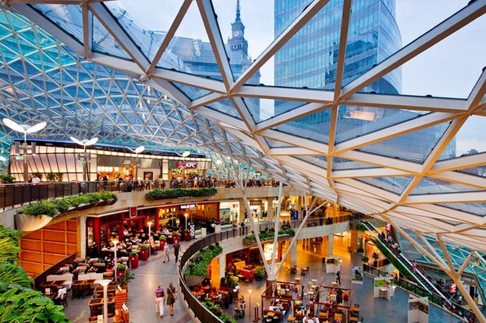 Торговий центр Золоті тераси в Варшаві розміщується під скляним куполом, завдяки чому вдається максимально ефективно використовувати природне денне світло.