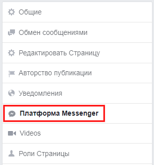 - Перейдіть в налаштування бізнес-сторінки, розділ “Платформа Messenger”: