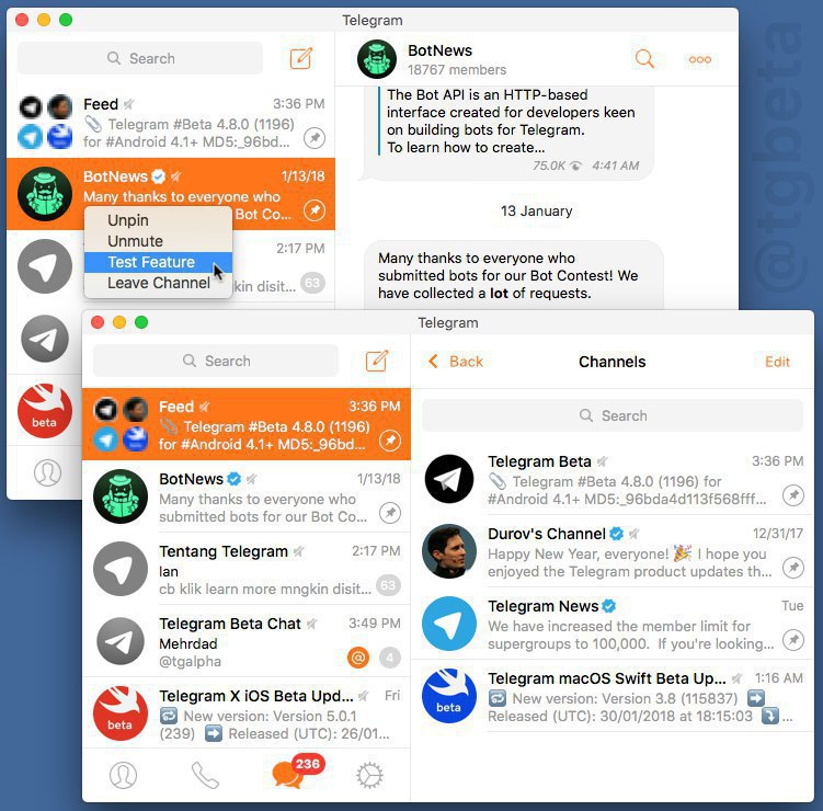 Telegram почав тестувати новинну стрічку (feed), яка буде виконувати функцію агрегатора каналів, що відокремлює їх від основного списку контактів. Як показано на скріншоті, зробленому каналом «Телеграм-маркетинг», відкривається нова опція в два кліка, що може виявитися зручним для користувачів. І взагалі, Дуров, що там з інструментами для просування каналів?