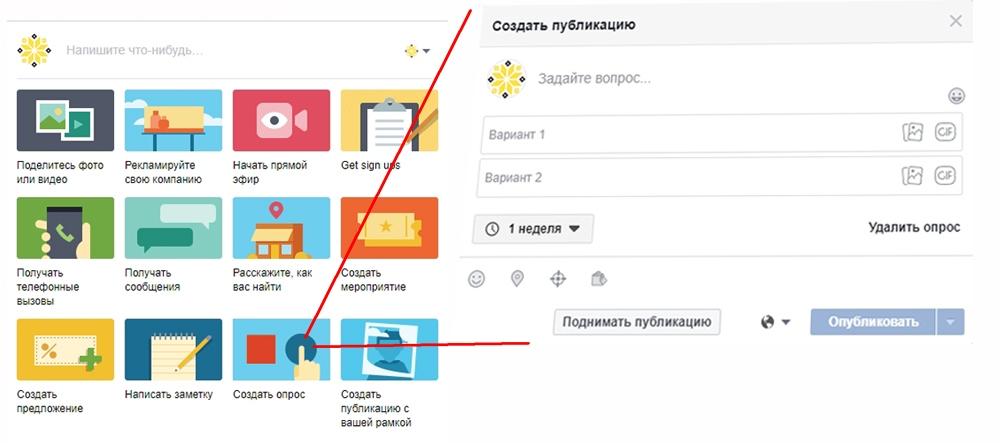 Вперше опція з’явилася ще в листопаді 2017 року, однак ставала доступною для всіх поступово. Сьогодні абсолютно всі бізнес-сторінки можуть створювати опитування, використовуючи фотографії і GIF-анімацію в якості варіантів відповідей. Для її використання досить вибрати в меню створення публікації “Опитування” і додати два можливих варіанти відповіді. Також автор може вказати дату завершення опитування і бачити відповіді кожного з тих, хто проголосував. Питання можуть містити текст будь-якої довжини, на відповіді виділено всього до 25 символів.