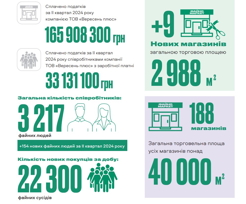 Плюс 9 магазинів і понад 4 млн грн для ЗСУ: Файно маркет підсумував результати II кварталу 2024 року