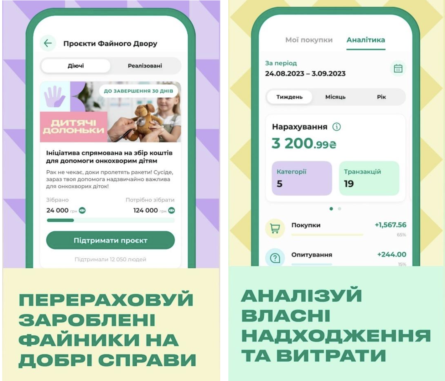 - благодійні проєкти «Файний Двір», що покликані згуртувати небайдужих сусідів. У цьому розділі можна зробити свій донат на різні ініціативи. А щоб покупці були певні, бонуси дійсно були направлені на обрану ініціативу, ритейлер регулярно звітує про це на своєму офіційному сайті.