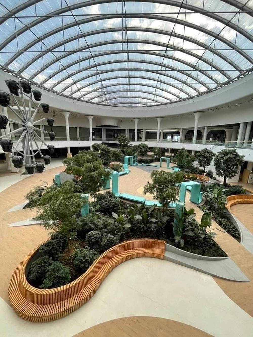 Концепцією ТРЦ передбачено унікальний суспільний простір, під назвою «Оазис» (загальною площею 2000 кв. м). Це перший з подібних об’єктів в Україні, де під куполом створений справжній public place з живими рослинами, сухим фонтаном, гідравлічної сценою та зонами відпочинку. Всередині та зовні ТРЦ висаджено близько 2000 дерев.