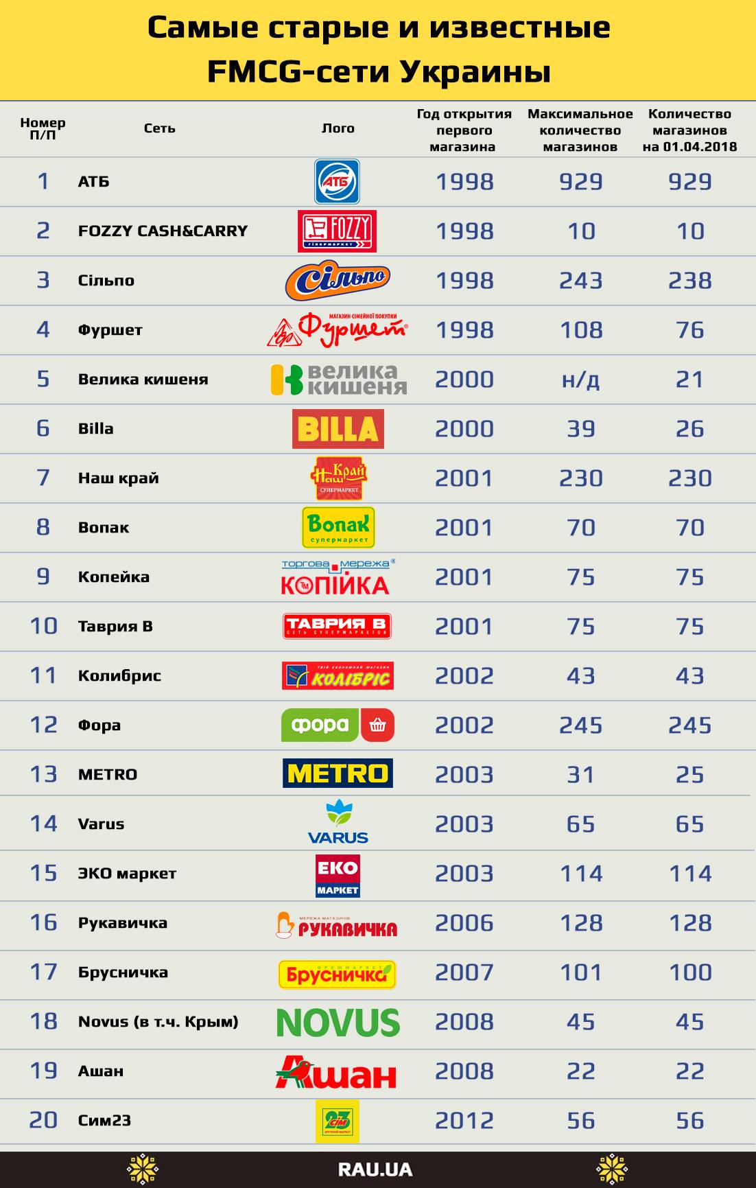 Старожили ринку: найстаріші FMCG-мережі України (+інфографіка)