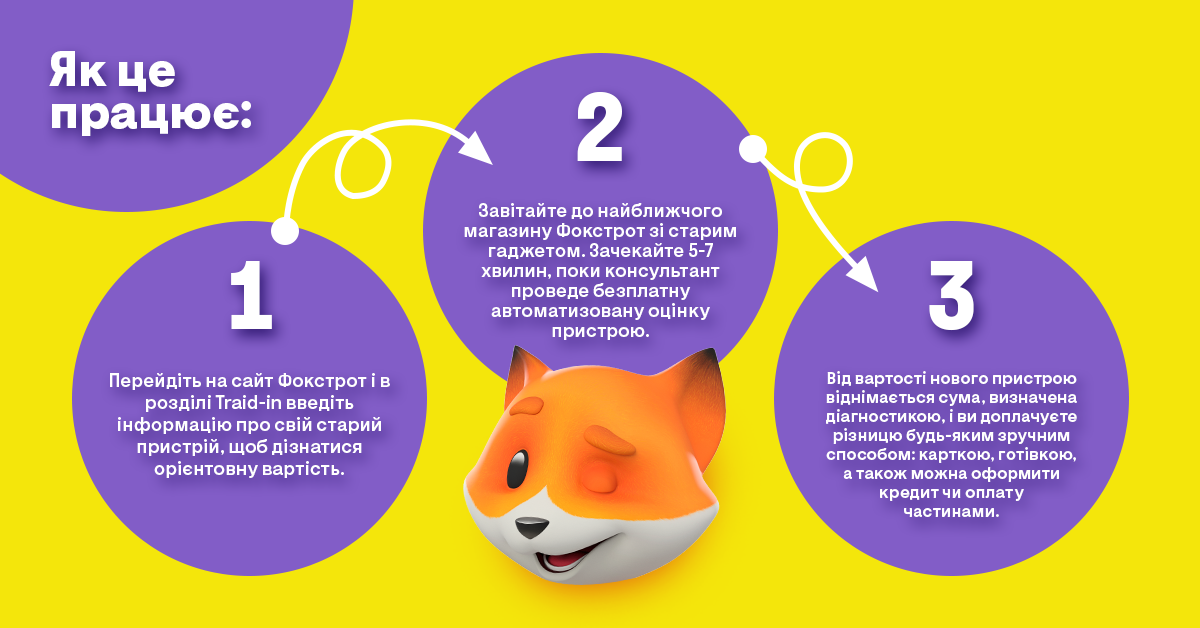 Оновлена програма Фоксі Обмін дозволяє обирати будь-яку техніку – від кавової машини до телевізорів. Дізнатися повний список пристроїв, які можна обміняти, а також самостійно розрахувати попередню оціночну вартість можна за допомогою онлайн-калькулятора.