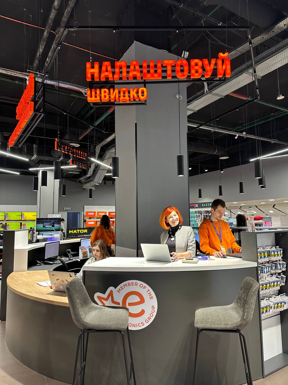 У торговій залі акцент зроблено на популярні інноваційні товари, які в будь-який момент можна протестувати на бренд-зонах відомих техногігантів: Delonghi, Samsung, LG, Electrolux, Philips, Sony, Whirlpool, Bosch та інші. На додачу, покупці можуть сплатити до 99% вартості товарів своїми старими гаджетами, завдяки сервісу Фоксі Обмін.