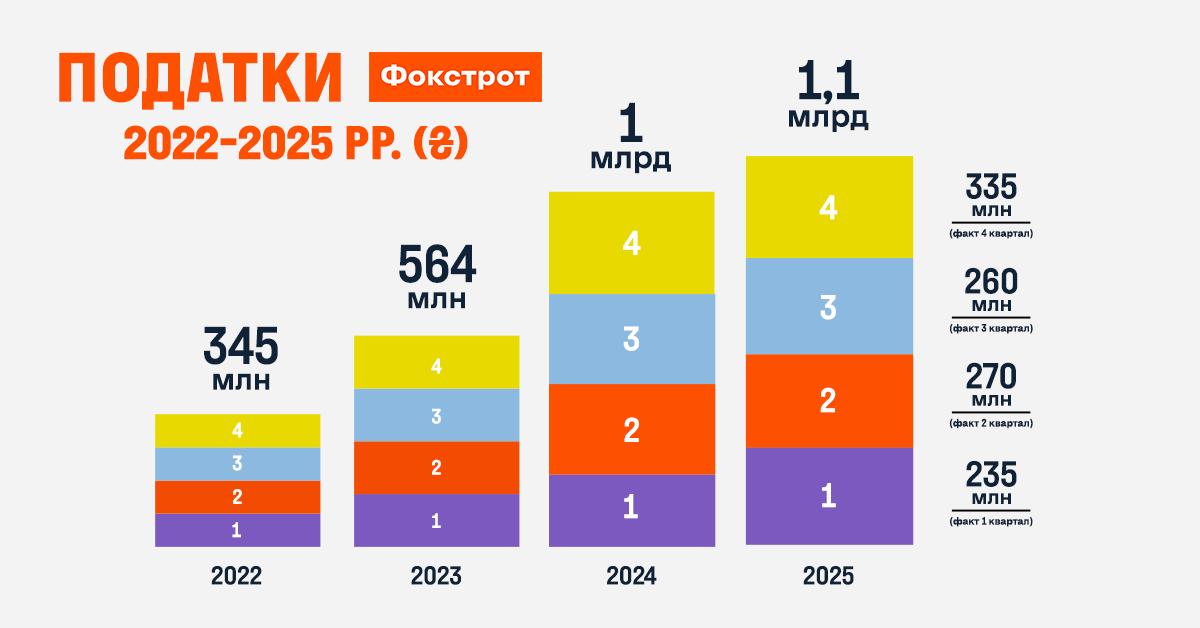 У 2025 році омніканальний ритейлер електроніки і побутової техніки Фокстрот сплатив до державного бюджету понад 1,1 млрд грн податків, що на 11,3% більше щодо попереднього року. Майже 37% цих надходжень сформували ПДВ з імпорту та митні платежі, що підкріплює роль компанії як відповідального та прозорого дистриб’ютора техніки.