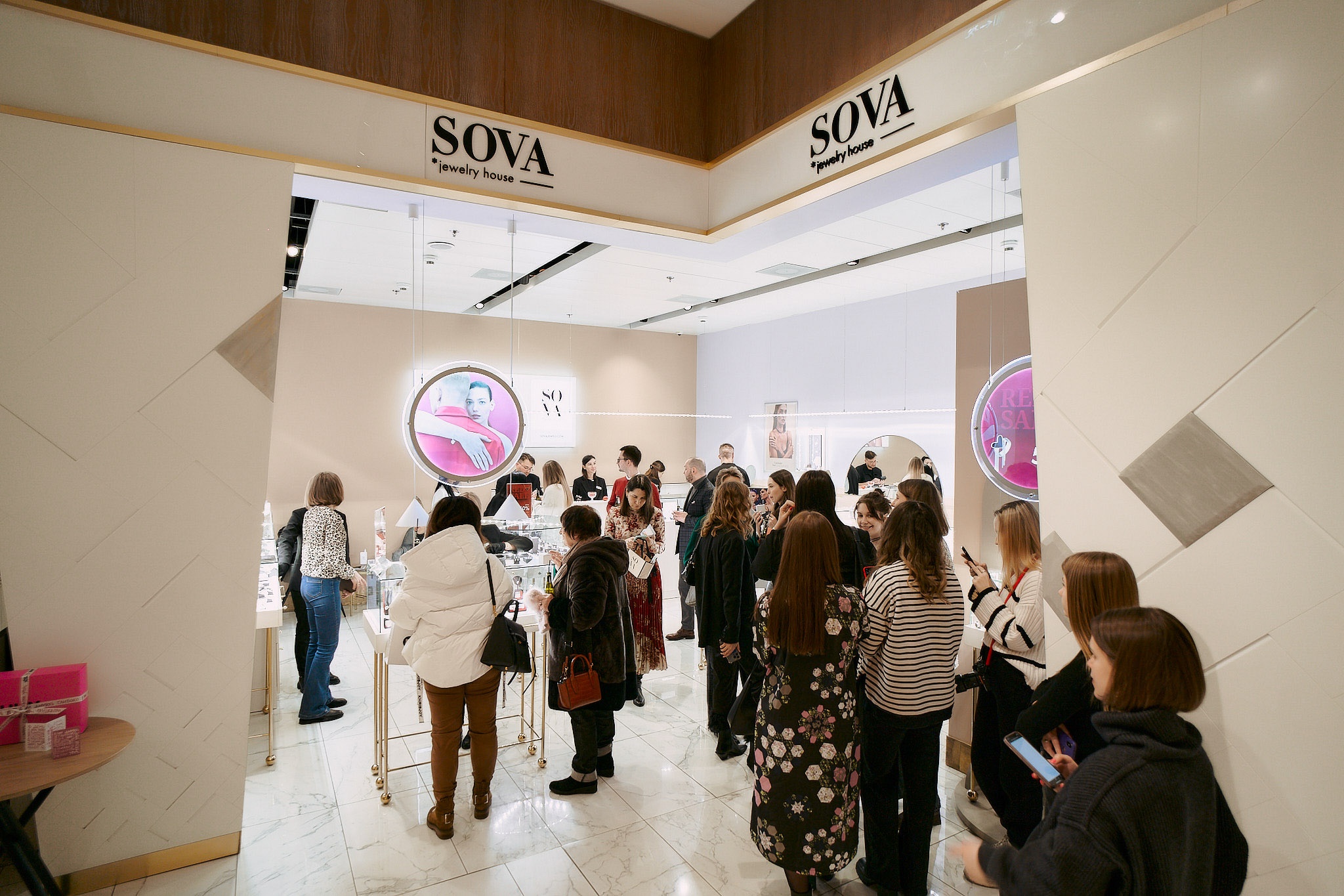 У День всіх закоханих ювелірний дім SOVA зібрав клієнтів та друзів бренду в оновленому форматі фірмового бутика в ЦУМ, щоб презентувати нову капсулу колаборації SOVA та FROLOV — поповнення колекції For Love.