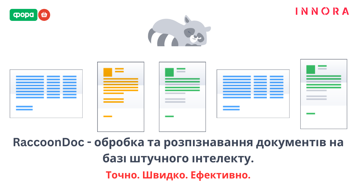 RaccoonDoc – сервіс зчитування та розпізнавання документів на основі штучного інтелекту. Сервіс дозволяє швидко та точно отримувати дані з різних типів документів, підвищуючи ефективність бізнес-процесів.