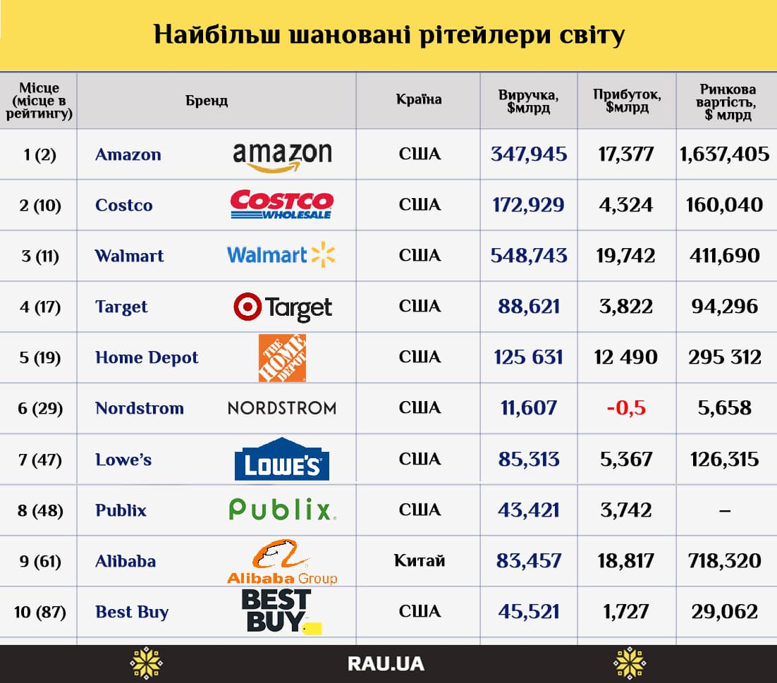 Рейтинг Fortune: топ-10 найбільш шанованих рітейлерів світу