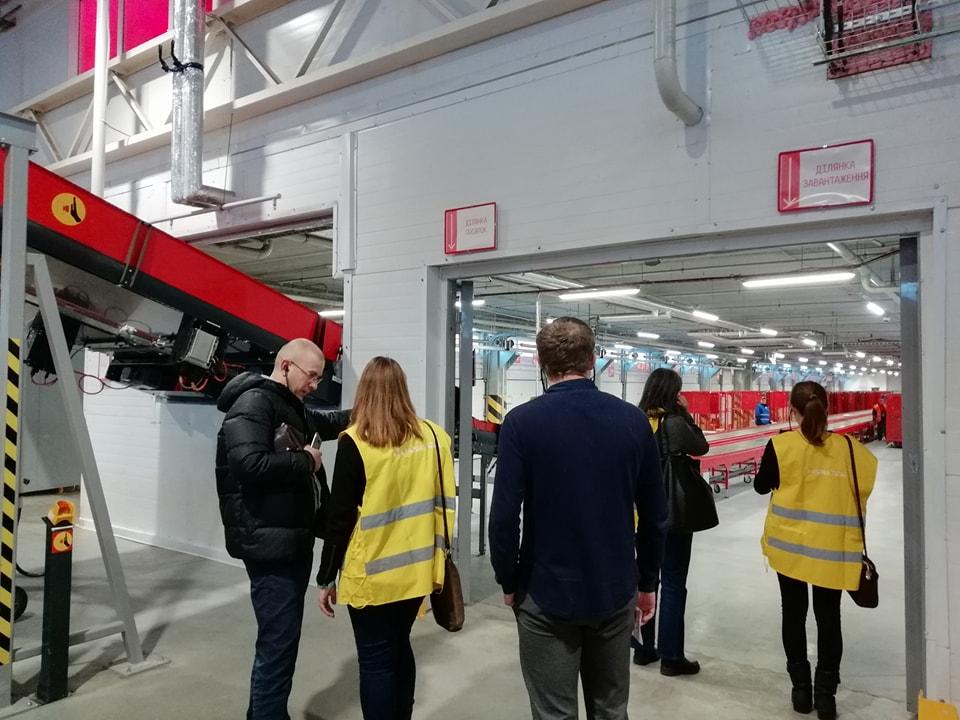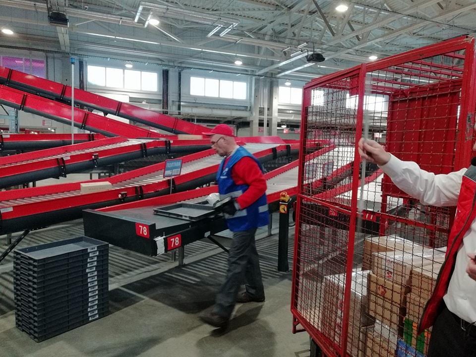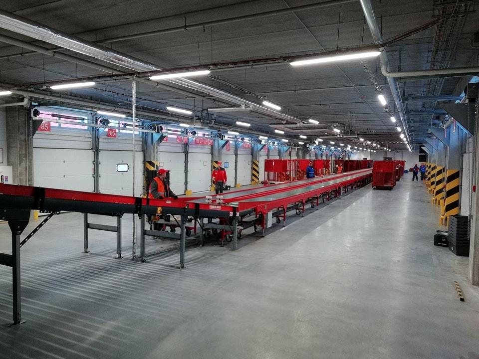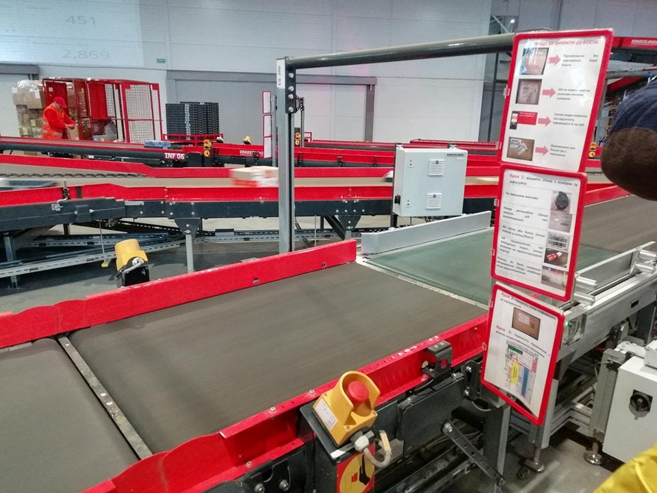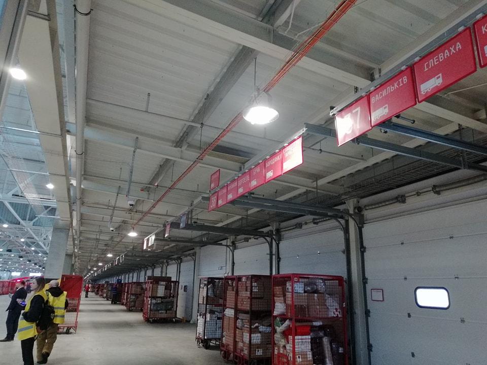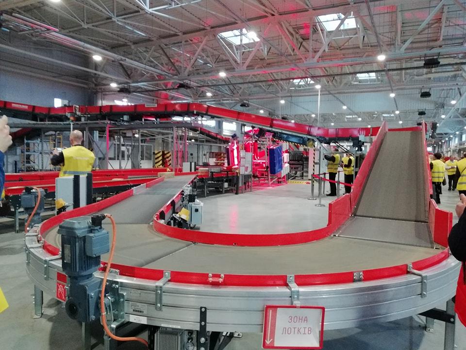 На фото – один з двох “депо” системи, яка відповідає за сортування посилок в маленькі відділення, такі як, наприклад, parsel shop Нова пошта в ТРЦ.