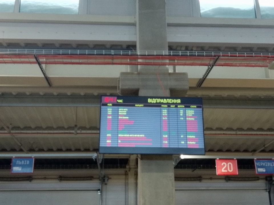 На воротах цієї частини терміналу відбувається завантаження автотранспорту, який доставляє посилки в відділення по Києву і по області. Поруч з воротами розташований ряд екранів, на яких відображаються дані про рейси, маршрутами, графіками, номеру воріт і статус виконання – в обробці, виконано або затримується.