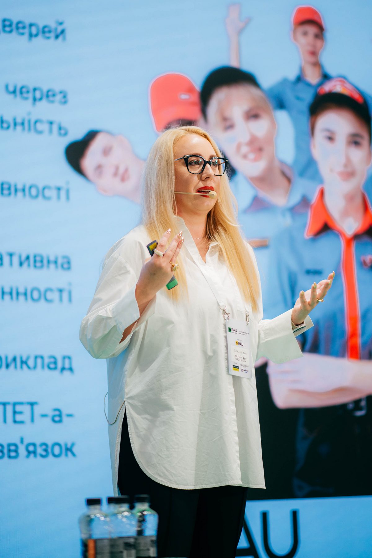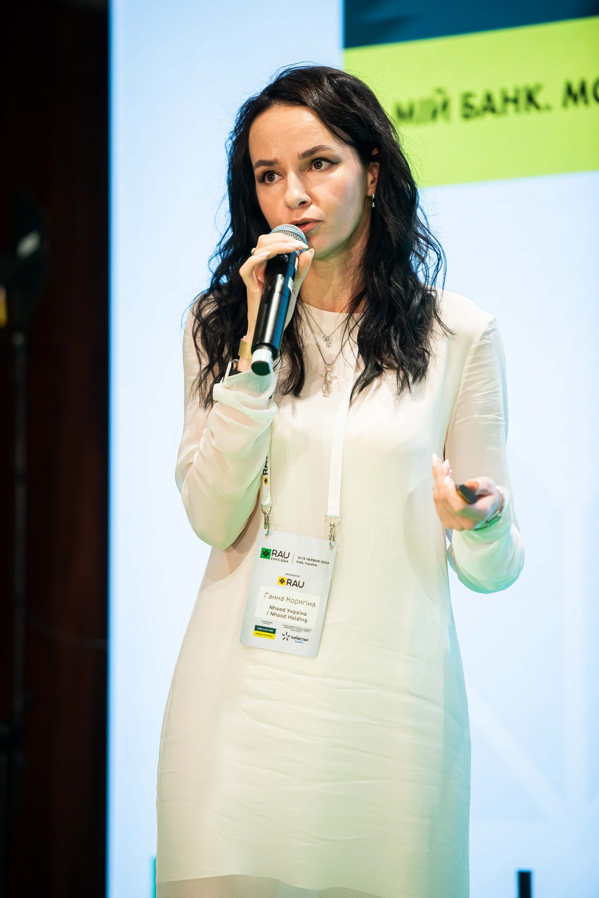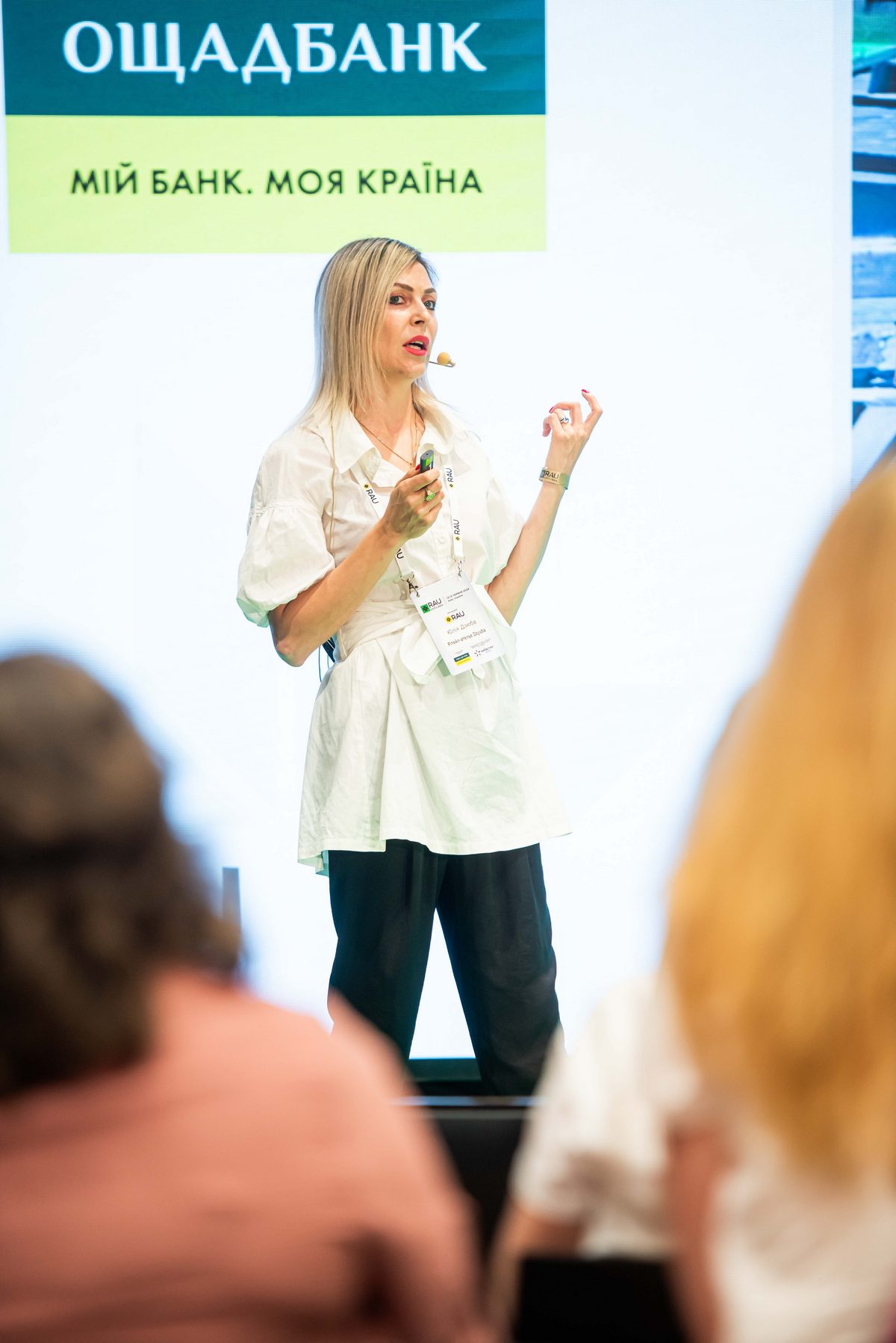 Директорка з маркетингу Агромат Юлія Дробишева, виступає з презентацією “Як клієнтський досвід драйвить бізнес”.