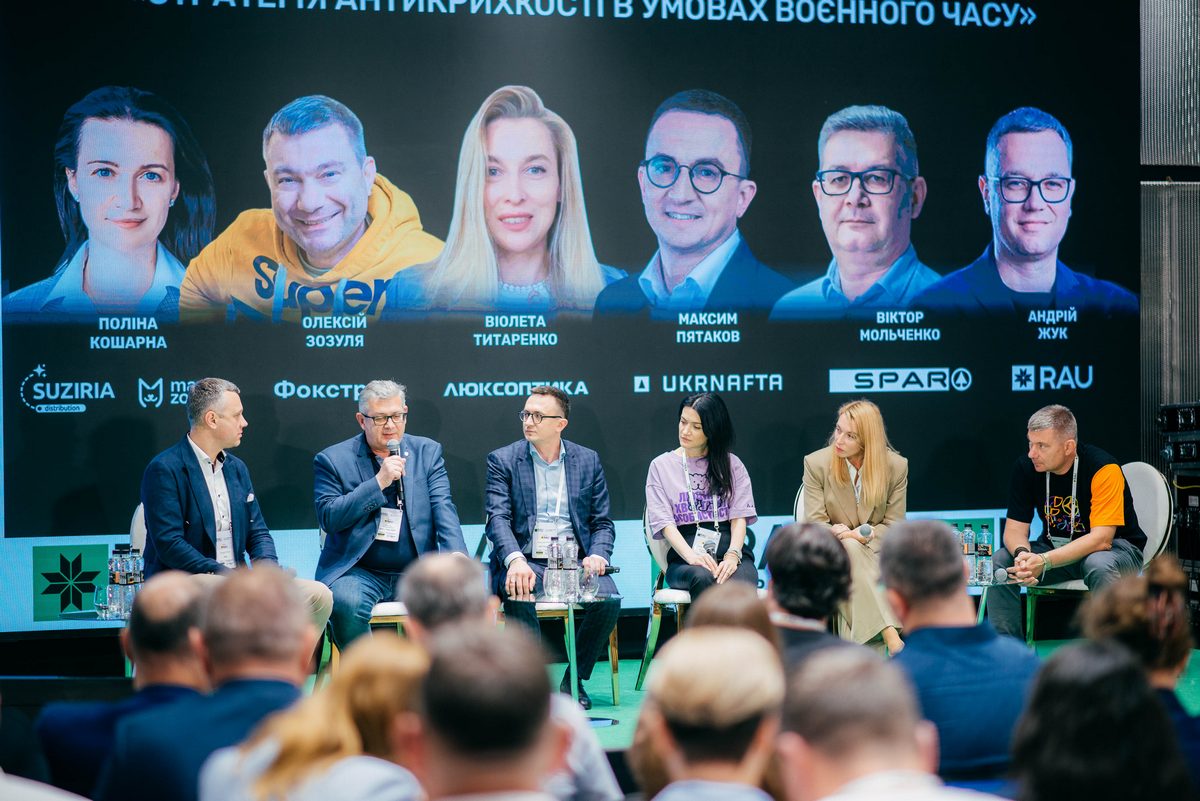 Тим часом у залі №2 кипіла панельна дискусія на тему “Стратегія антикрихкості в умовах воєнного часу”. Її учасниками стали співвласниця і голова наглядової ради Suziria Group та засновниця мережі зоомаркетів MasterZoo Поліна Кошарна, CEO Фокстрот Олексій Зозуля, директорка роздрібної мережі Люксоптика Віолета Титаренко, директор департаменту непаливних продажів ПАТ “Укрнафта” Максим Пятаков та директор з розвитку SPAR та “Наш Край” Віктор Мольченко. Модератор дискусії: Андрій Жук, голова Асоціації ритейлерів України.