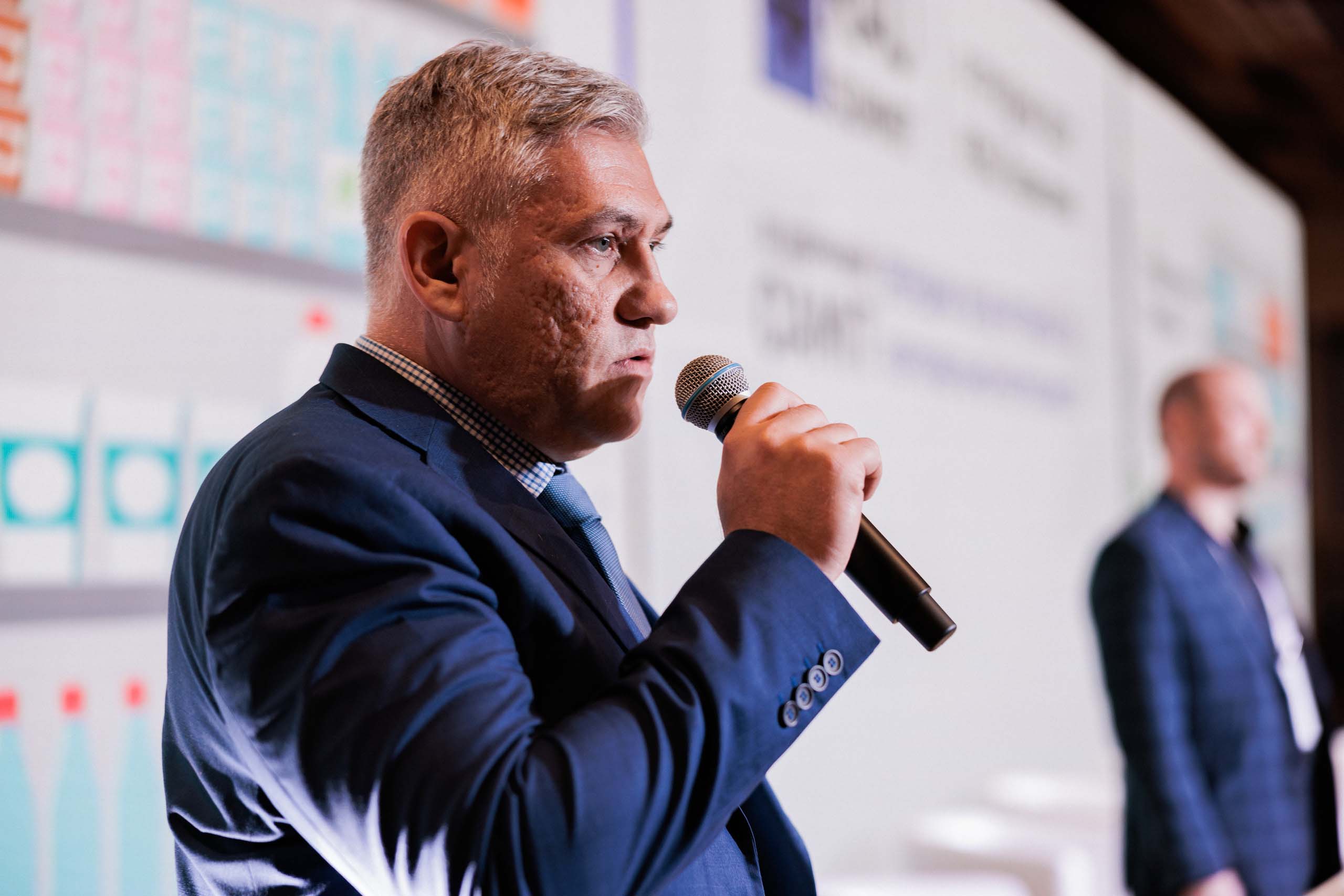 Сесія “Трансформація та тренди сьогодення”. З мікрофоном – Chief digital officer ТОВ “Епіцентр К” Андрій Труш