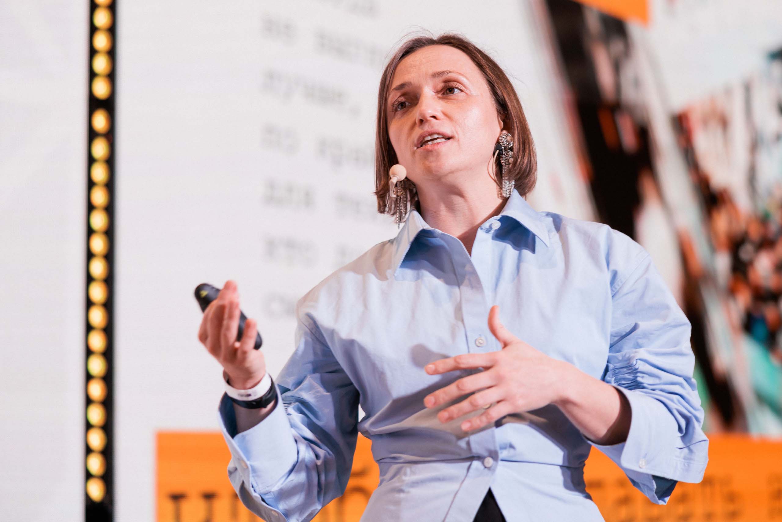 Модератор сесії – керуючий партнер IDNT Олена Коронотова – звертається до співвласника Планети Кіно