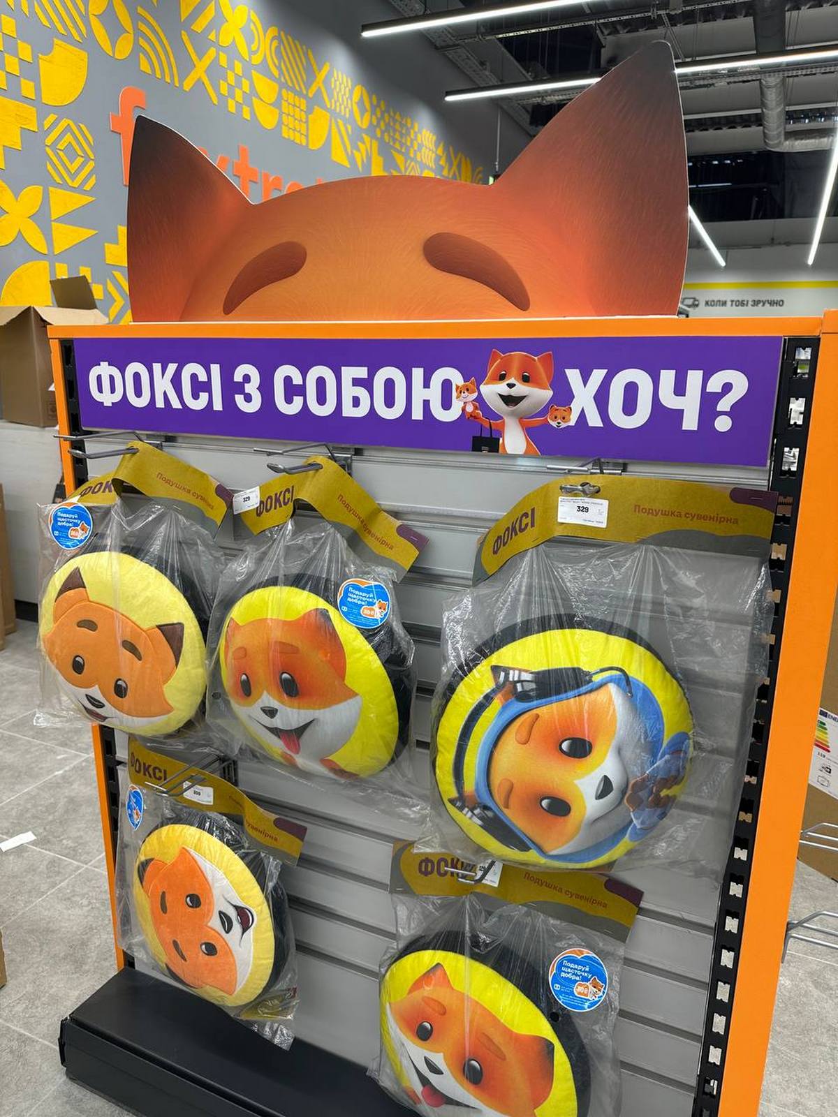 Фірмовий стиль Фокстрот доповнено українськими етноелементами, що створюють унікальну атмосферу та додають національного колориту. «Серце» магазину – сервісний хаб – об’єднав зону кас, IT-сервісів, перевірки товару, видачі інтернет-замовлень та кредитну зону, що робить оформлення покупки ще комфортнішим. У магазині організовано бренд-зони Apple і Samsung, Tefal, Philips, Delonghi, Braun, LG тощо, а також – фірмового мерчу для прихильників Фоксі.